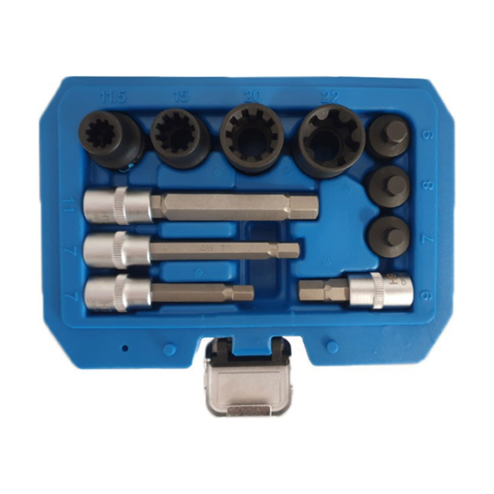 Ontdek de ultieme oplossing voor al je remklauwbehoeften met onze Remklauw dopsleutelset 11-dlg. Deze hoogwaardige set is speciaal ontworpen om je te helpen bij het efficiënt en nauwkeurig demonteren en installeren van remklauwen op zowel personenauto's als lichte vrachtwagens. Of je nu een professional bent in de autoservice of een enthousiaste doe-het-zelver, deze set is een onmisbare aanvulling op je gereedschapscollectie.