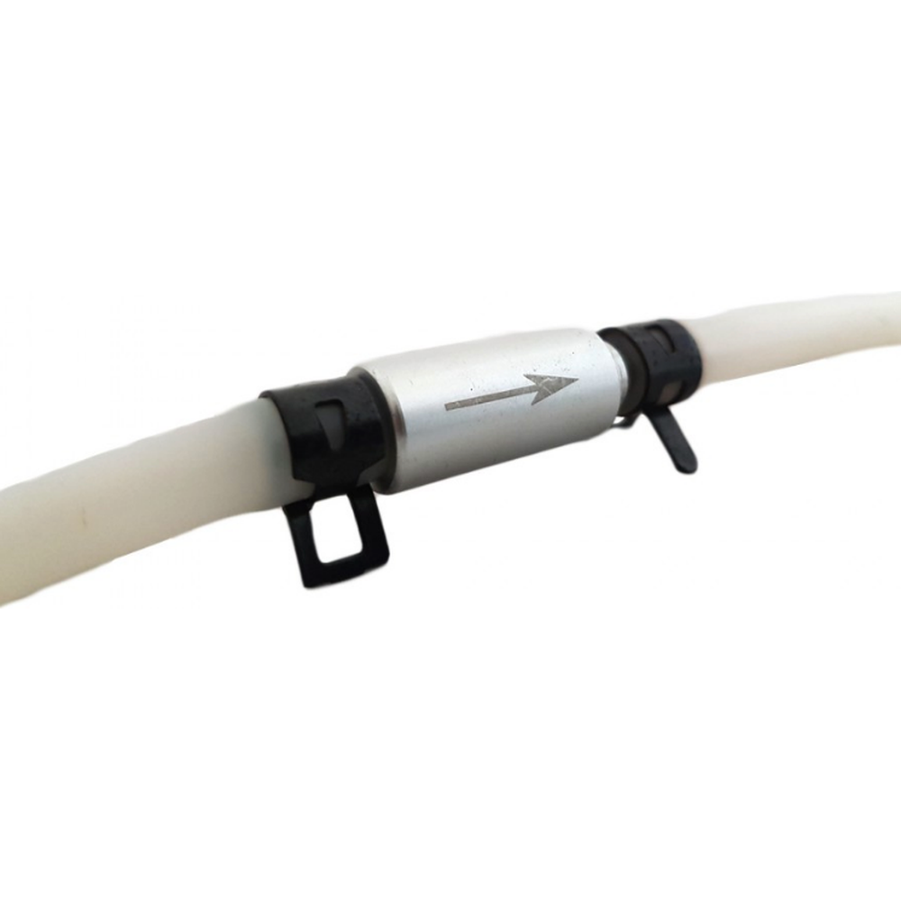 Onze Remontluchting set is uitgerust met een 1 meter lange siliconen slang die is voorzien van een unieke veiligheidsklep. Dit éénweg ventil ontwerp, aangegeven met een pijltje op de veiligheidsklep, garandeert dat er geen lucht kan terugstromen in het systeem, wat de veiligheid en effectiviteit van het ontluchtingsproces verder verhoogt.