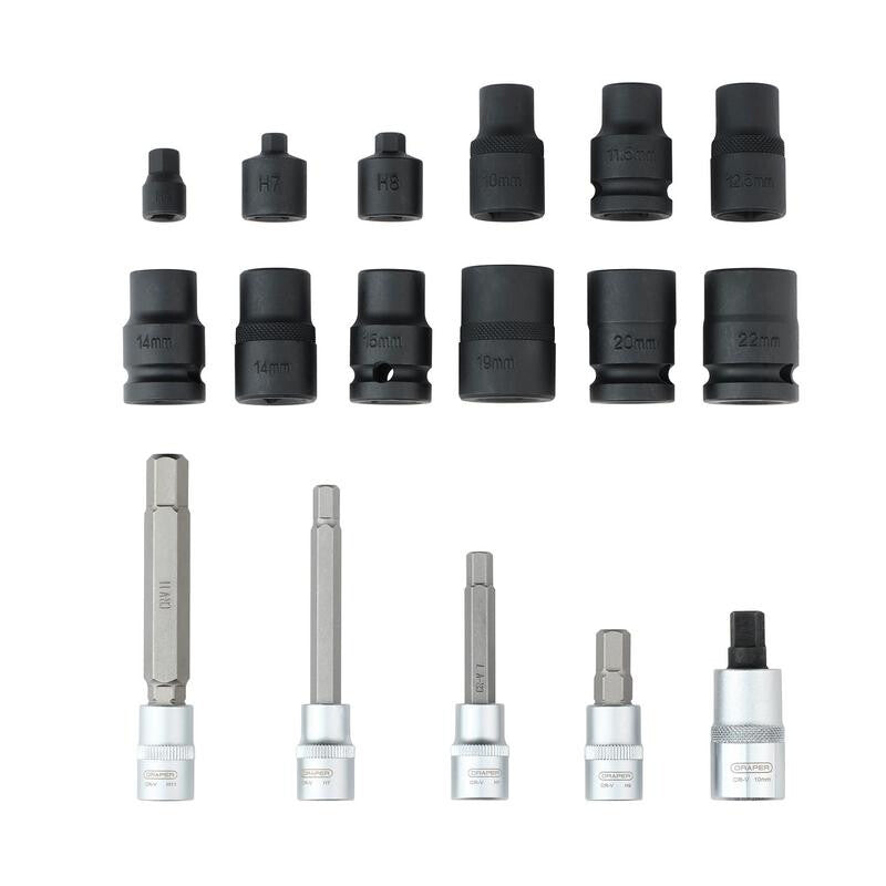 3x 1/2" 10-Punts remzadeldoppen 11,5, 15, 20mm