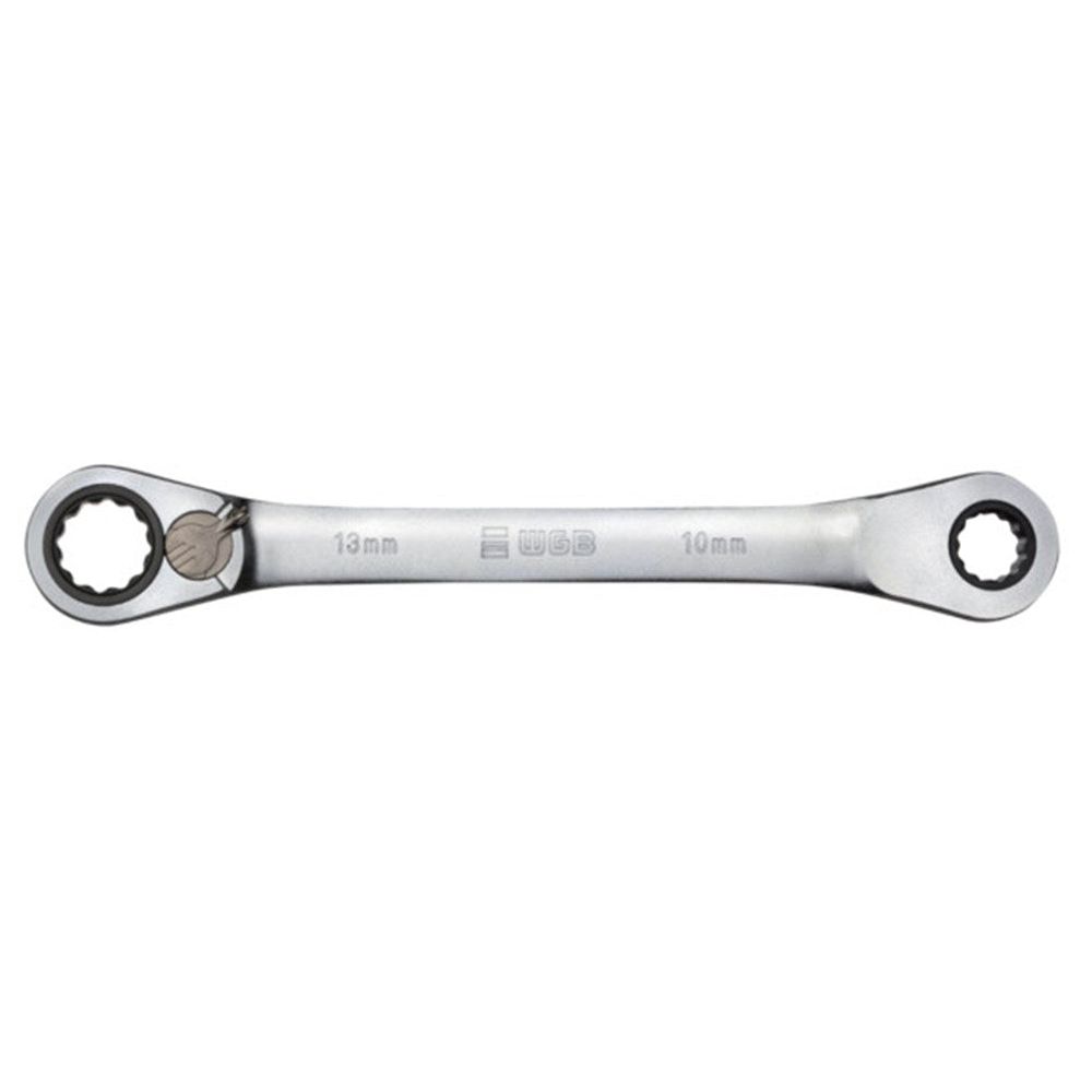 dubbele ringratelsleutel met stopring DIN ISO 691, DIN ISO 1711 chroom vanadium staal verchroomd gebogen uitvoering beide zijden zijn omschakelbaar 72 tanden