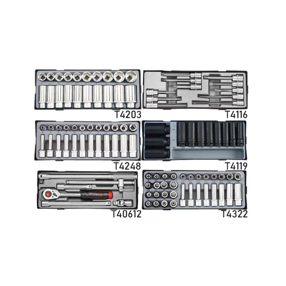 • 3/8" Torx stiftdop T8-T10-T15-T20-T25-T27-T30-T40-T45-T50-T55-T60 (artikel 34605508 t/m 34605560)