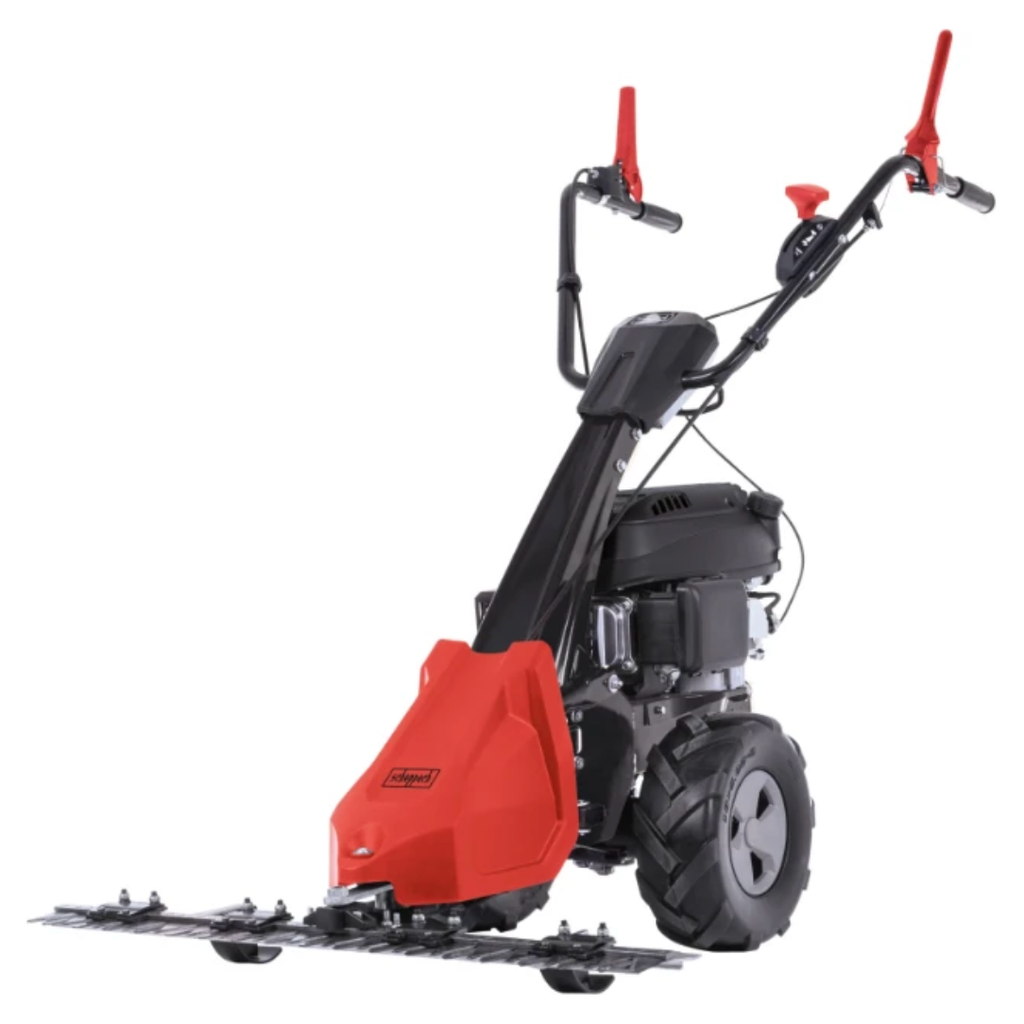 Scheppach balkenmaaier BMS196-88 is ideaal voor het maaien van ruwe terreinen en grote oppervlakken met hoog gras, zoals boomgaarden, weilanden of siertuinen. Met een extra grote maaibreedte van 88 cm, rijsnelheid van 2,52 km/u en krachtige 5,7 PK/4,2 kW 4-takt benzinemotor is de balkenmaaier ontworpen voor gazons tot 3.000 m2. De grote banden met offroad-profiel zorgen voor een bijzonder goede grip, zelfs op hellingen.