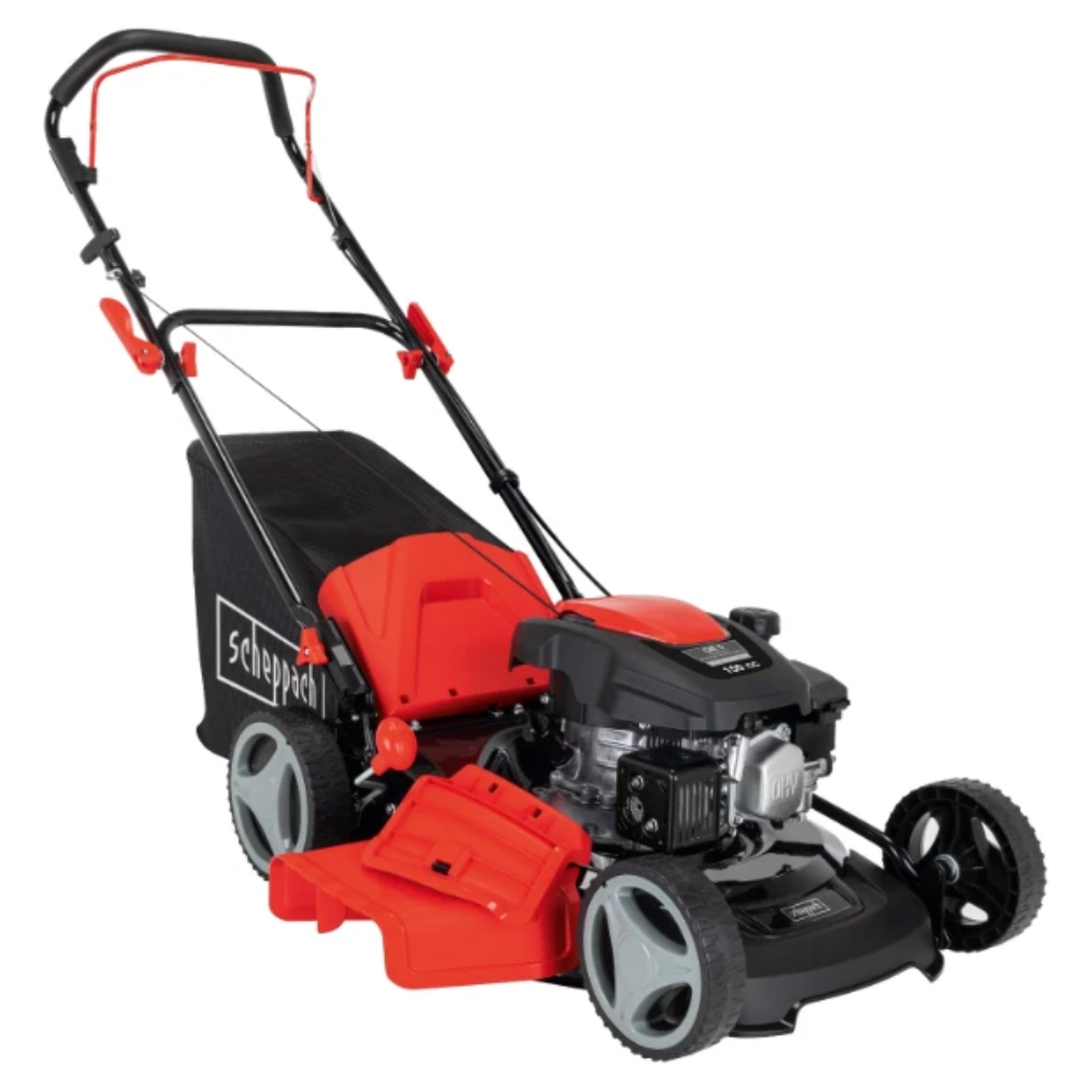 Scheppach grasmaaier MP150 is een flexibele en krachtige benzinemaaier voor tuinen tot een oppervlakte van 1000 m². De MP150-46 is een perfecte maaimachine voor iedereen die op zoek is naar een lichte, maar krachtige en robuuste grasmaaier. De 3,5 HP 4-takt benzinemotor voorziet de grasmaaier van voldoende vermogen om zelfs lange grassprieten of vochtige gras te maaien. In de kunststof opvangbak is plaats voor 55 liter maairesten. De zij-uitworp- en mulchingfunctie maken van deze grasmaaier een multifunctioneel apparaat.