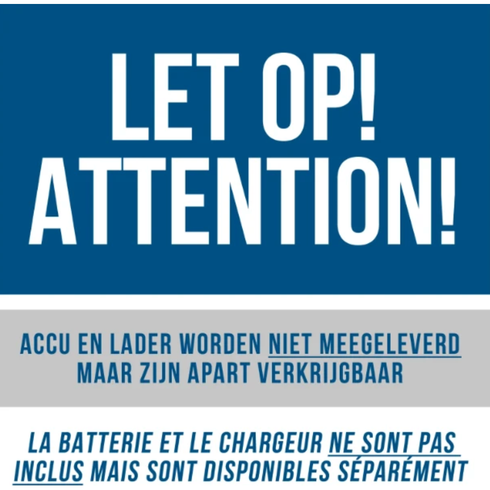 De accu en lader zijn niet inbegrepen maar apart verkrijgbaar.