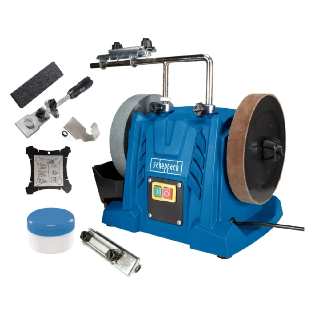 Het ideale slijpsysteem voor thuiswerkplaatsen en professioneel gebruik. Om onbedoelde fouten bij het slijpen van gereedschap te vermijden, is veel oefening en ervaring - of de TIGER 5000S Homekit van Scheppach. Met dit nat slijpsysteem is slijpen en polijsten een fluitje van een cent. De krachtige 150 W inductiemotor maakt zeer stil en aangenaam werken mogelijk, omdat hij de resulterende trillingen optimaal vermindert. Dankzij de meegeleverde hoek hoekmeter kan de juiste slijphoek in een handomdraai nauwkeurig worden ingesteld.