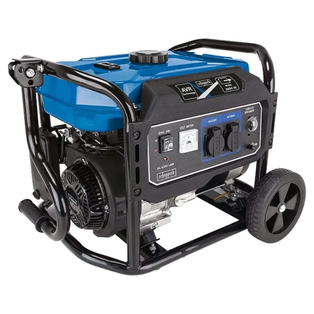 Scheppach stroomgenerator SG3200x wordt aangedreven door een 212 cm³ 4-takt motor en levert met maximaal 5400 Watt voldoende vermogen voor werkzaamheden rondom het huis of op de werkplaats. Dankzij het stevige verrijdbare stalen frame met uitgeklapte handgrepen is de stroomgenerator mobiel en veelzijdig inzetbaar. De geïntegreerde overbelastingsbeveiliging, voltmeter en een oliepeil indicator zorgen voor optimale veiligheid.