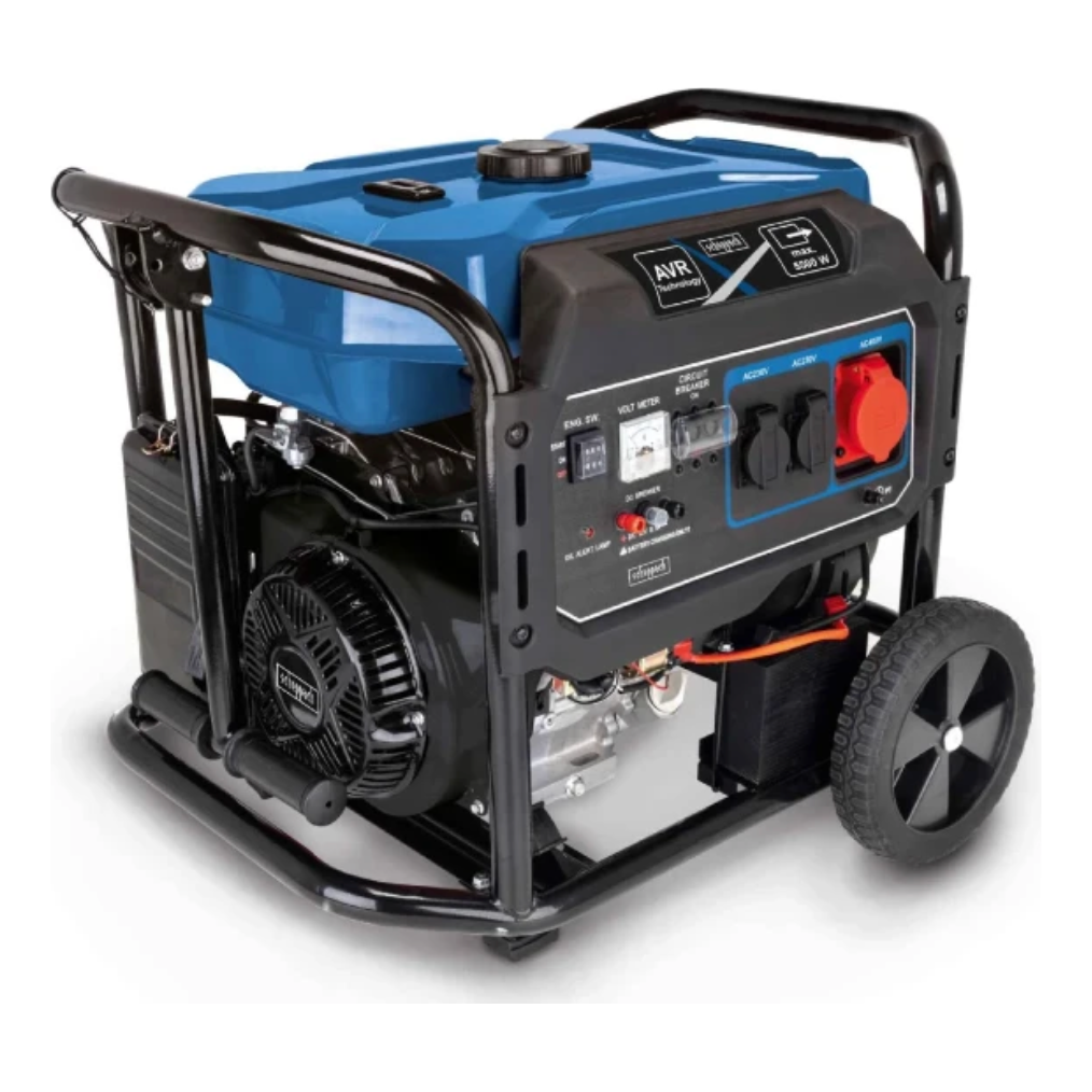 Scheppach stroomgenerator SG7100x wordt aangedreven door een 420 cm³ 4-takt motor en levert met maximaal 5400 Watt voldoende vermogen voor werkzaamheden rondom het huis of op de werkplaats. Dankzij het stevige verrijdbare stalen frame met uitgeklapte handgrepen is de stroomgenerator mobiel en veelzijdig inzetbaar. De geïntegreerde overbelastingsbeveiliging, voltmeter en een oliepeil indicator zorgen voor optimale veiligheid.