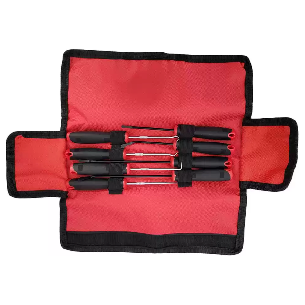 Ontdek de veelzijdigheid van onze "Set haken met rechte en afgeronde punt 8-dlg", uw ideale partner voor diverse toepassingen in de wereld van het onderhoud en de reparatie. Deze set bevat acht speciale mini-haken, ontworpen om het werken met o-ringen, keerringen, stofringen en bussen eenvoudiger en efficiënter te maken. Of u nu een professional of een hobbyist bent, deze haken zijn onmisbaar in uw gereedschapscollectie.