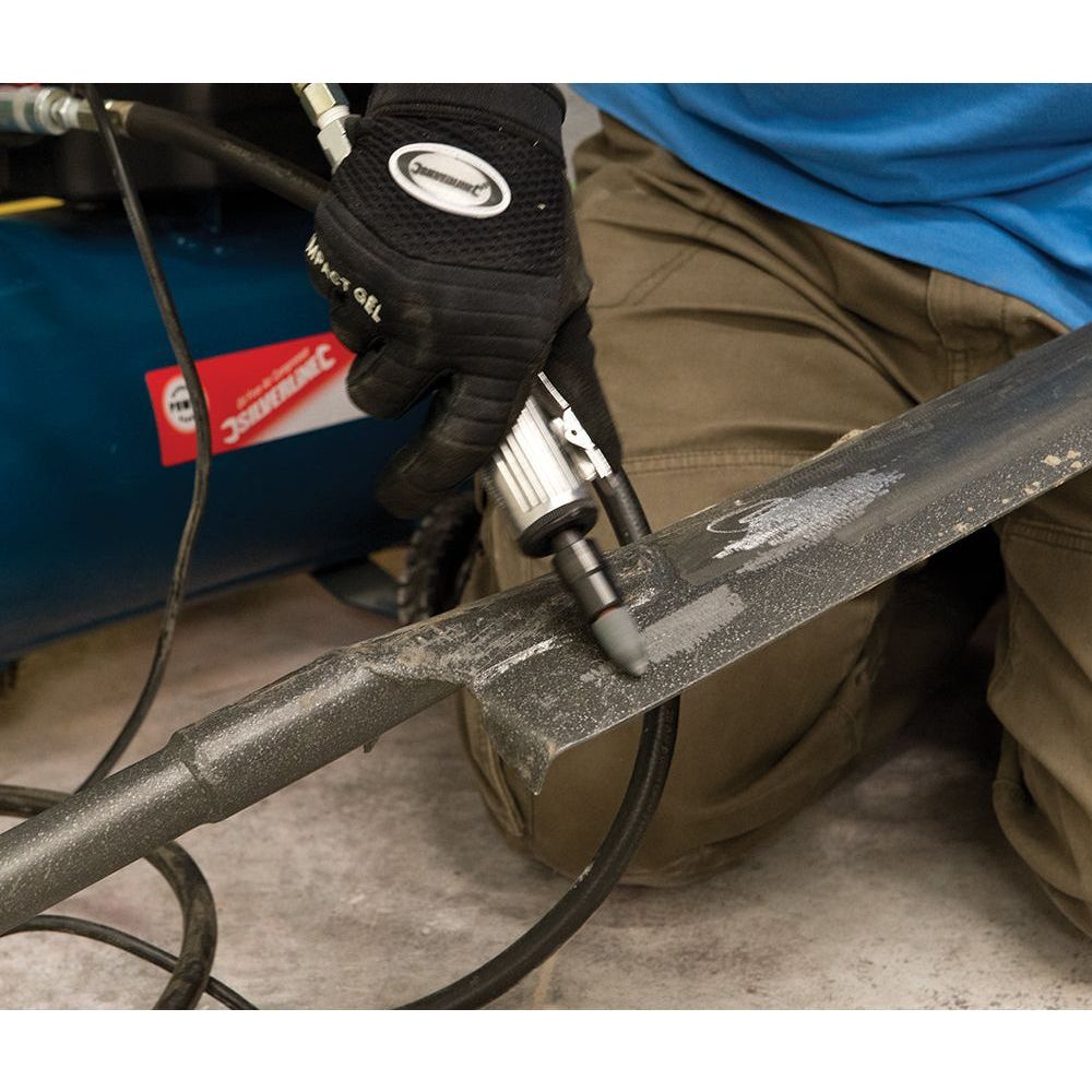 De slijper is geschikt voor alle slijpstenen met een 1/4" of 1/8" schacht. De set bevat 10 slijpstenen, 2 steeksleutels, 1/4" en 1/8" ashalzen en een 1/4" bajonet snelkoppeling. Luchtverbruik 113 L/min (4 cfm). Lengte 160 mm.