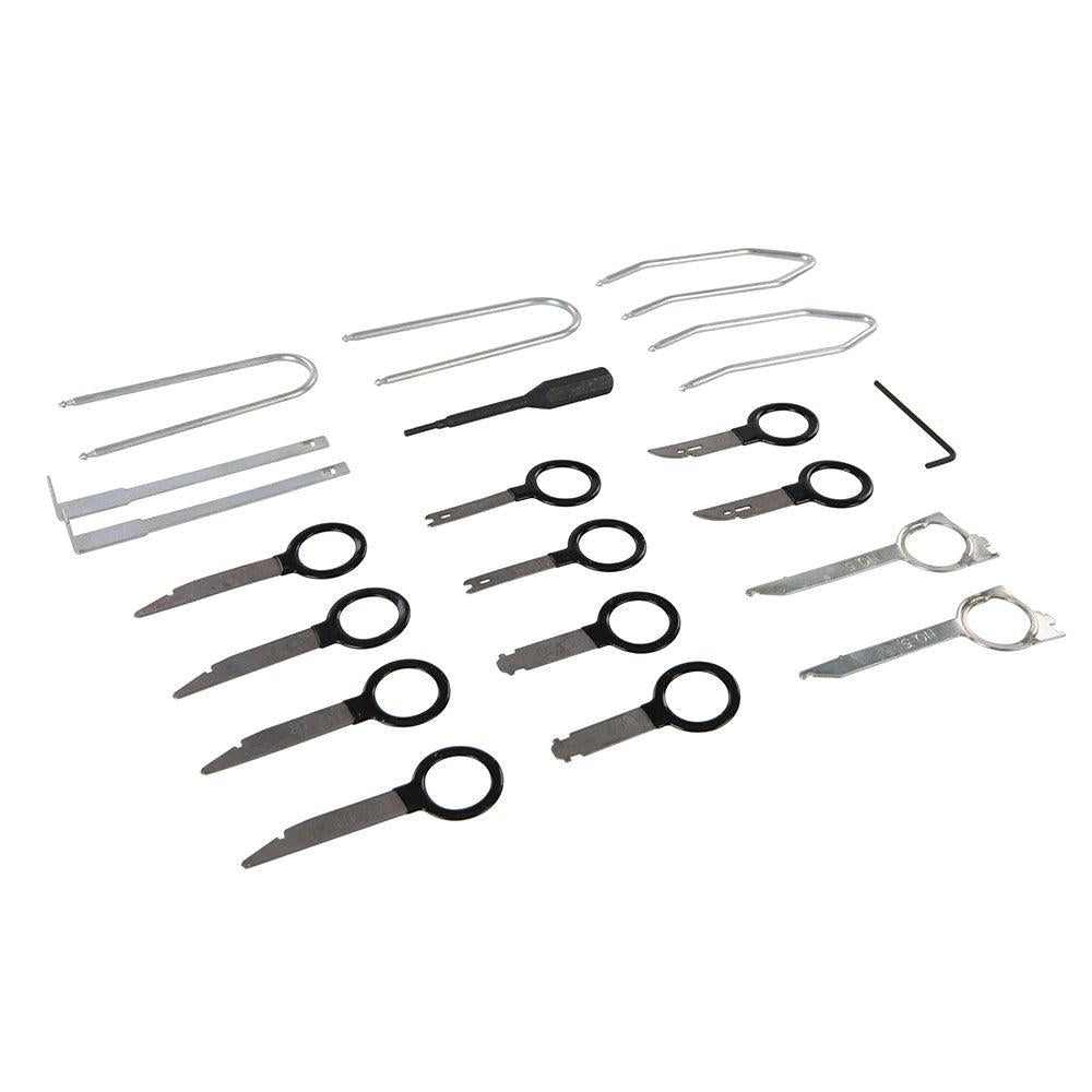 Roestvrijstalen sleutels. Verwijdert een breed omvang aan autoradio's. Geschikt voor het verwijderen van radios uit VW, Audi, Mercedes, Skoda, BMW en Ford. Verwijdert ook merkradio's zoals Becker, Pioneer, JVC en Blaupunkt. Sleutels worden geleverd in een veilige, plastic gereedschapstasje.