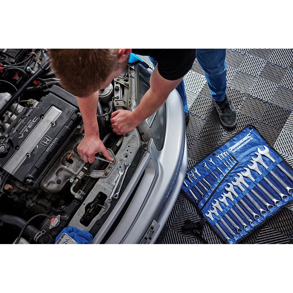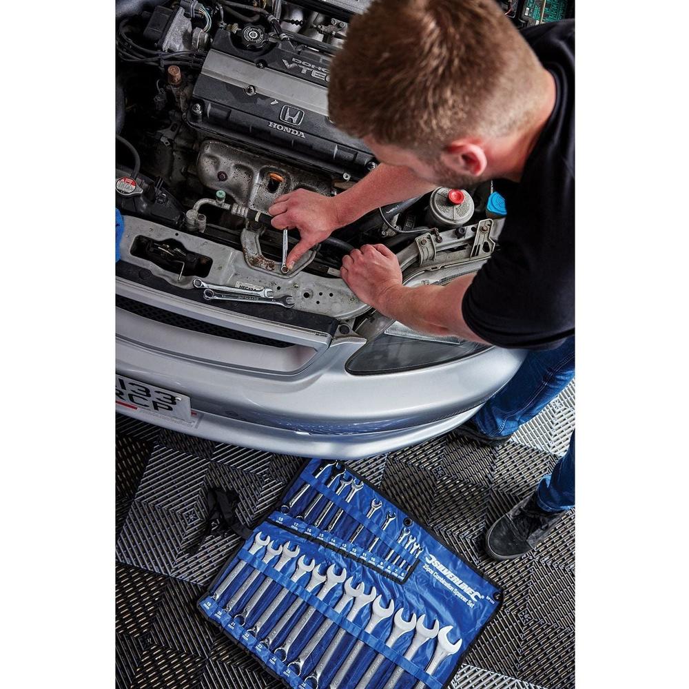 Open en bi-hexagonale sleutels met 15° koppen voor het gebruik op moeilijk bereikbare plekken. Gesmede, geharde, chroom vanadium stalen sleutels met een dun profiel en een gepolijste afwerking. Inclusief sterke, nylon opbergetui. Metrische maten: 6, 7, 8, 9, 10, 11, 12, 13, 14, 15, 16, 17, 18, 19, 20, 21, 22, 23, 24, 25, 26, 27, 28, 30 en 32 mm.