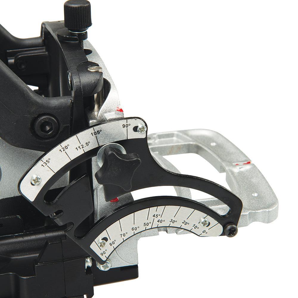 De Silverline lamellenfrees is uitgerust met een sterke aluminium geleider, die zorgt voor stabiliteit en nauwkeurigheid tijdens het frezen. Met een flexibel hoekbereik van 0º tot 135º kun je eenvoudig de hoeken instellen die je nodig hebt voor jouw specifieke project. Dit maakt het een veelzijdig apparaat voor zowel professionele houtbewerkers als hobbyisten.