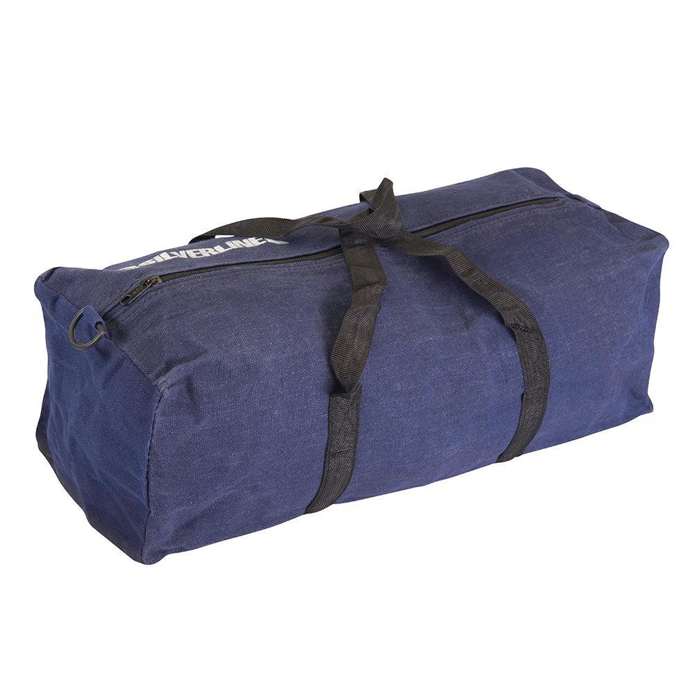 'Heavy-Duty' gereedschapstas, gemaakt van katoen canvas. Sterke handvaten en 'Heavy-Duty' nylon rits. Uitlopende zakken.