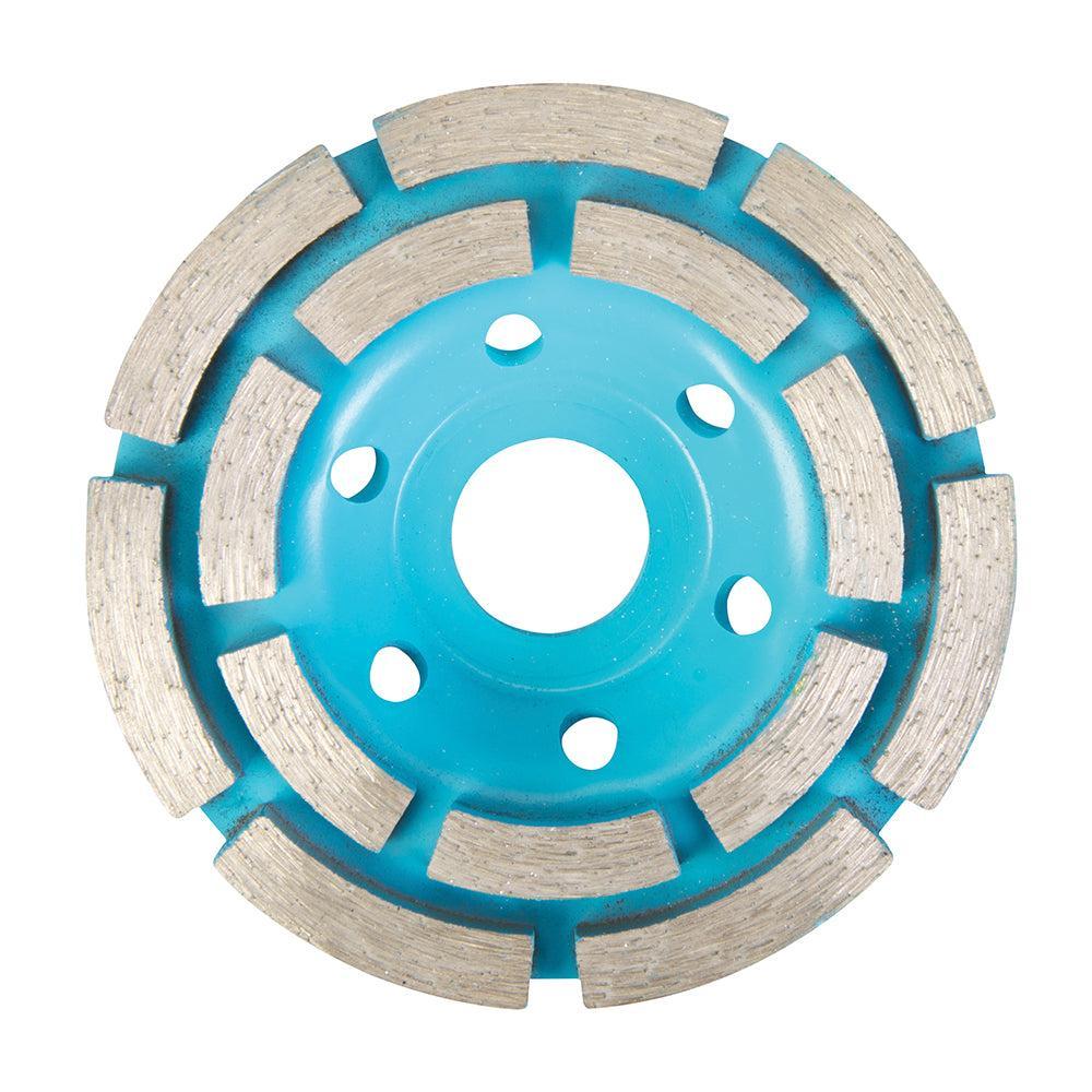 Gesinterde diamant slijpschijf met 7 mm segment hoogte voor het fijn slijpen van beton, metselwerk en steen. Dubbele rij voor een fijne afwerking. Max. 15.000 min-1. Compatibel met 22,23 mm asgat haakse slijpmachines, inclusief Silverline en GMC. Zowel voor nat als droog slijpen. Optimale resultaten bij natslijpen.
