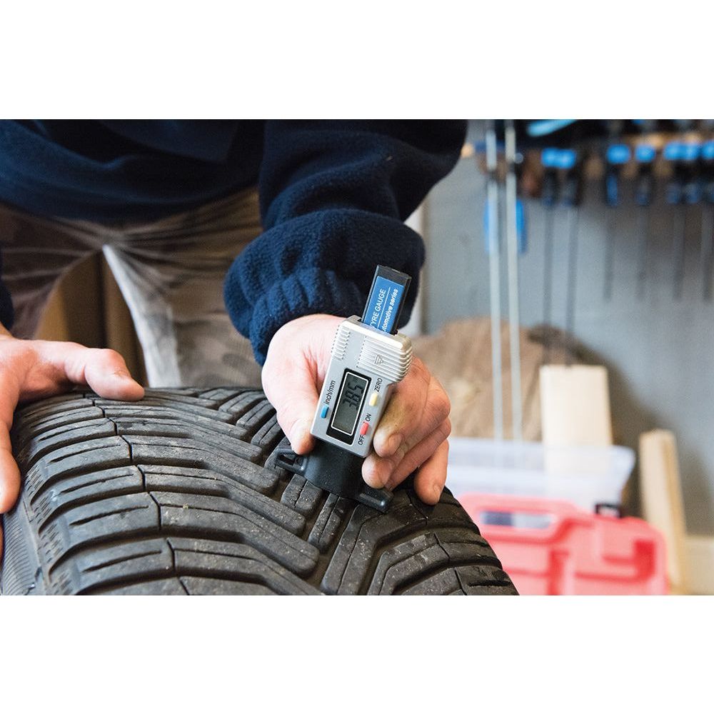 Digitale bandenprofielmeter, ideaal voor het controleren van banden, remblokken en gat dieptes met een 0,01 mm resolutie. Helder LCD display met metrische en imperiale weergaven. Meetbereik 0-25 mm. Nul-knop voor snelle her-kalibratie. Inclusief 1 x CR2032 batterij.