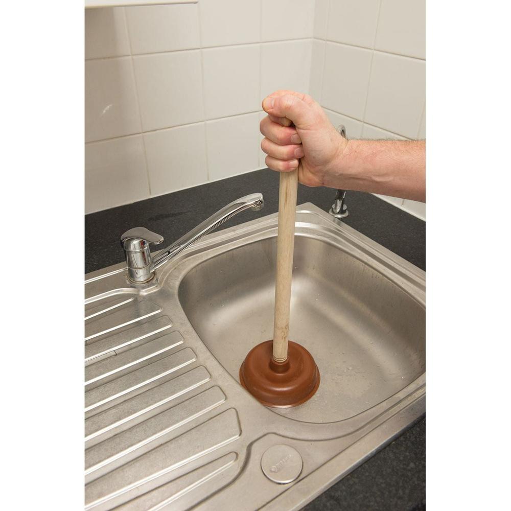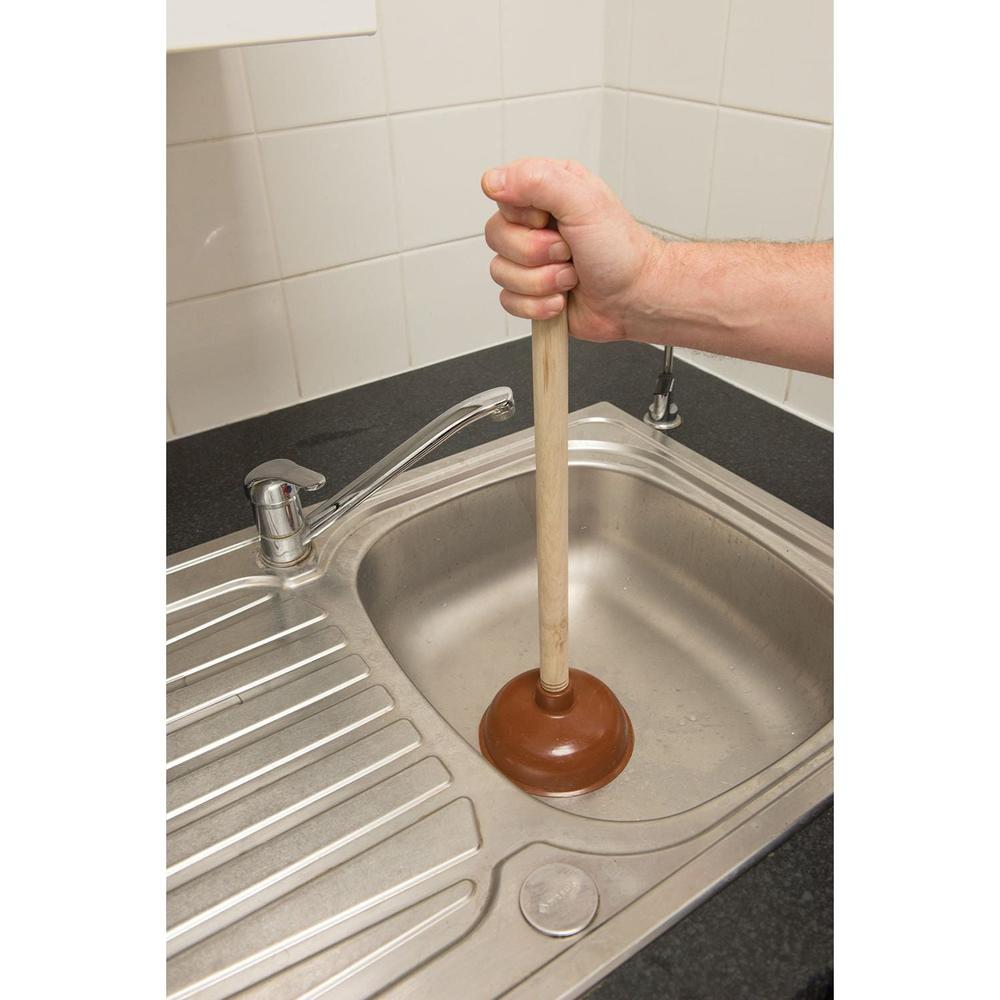 Rubberen gootsteen ontstopper met een 24 mm diameter houten handvat. Voor wastafels en gootstenen.