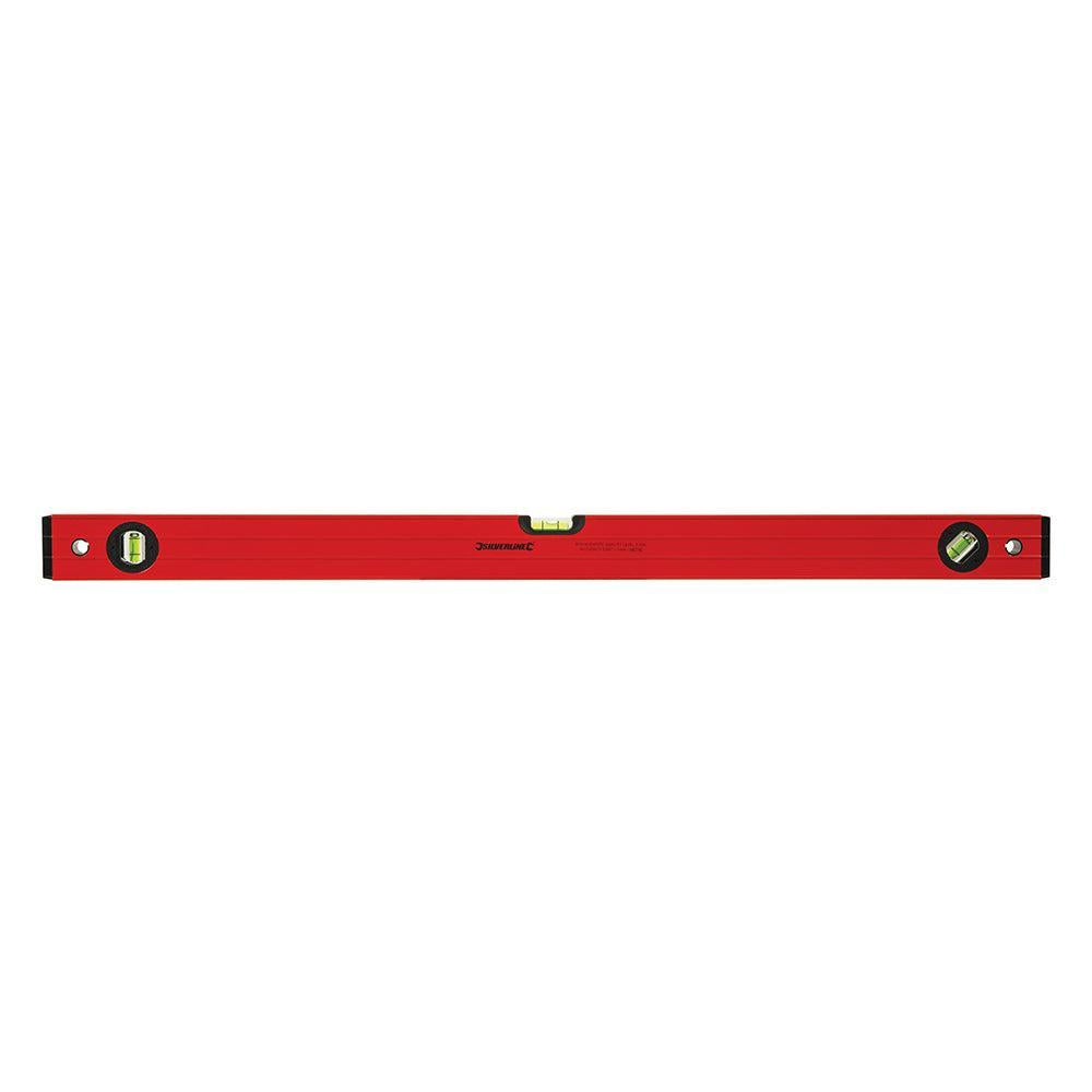 Poeder gecoat, geextrudeerd 1,2 mm dik aluminium met geribbelde zijdes, beschermende einddoppen en hanggat. Kartelige boven en onderzijden voor verbeterde nauwkeurigheid. Sterk zichtbare, UV-bestendige 45°, 90° en 180° libellen. Hanggat voor een gemakkelijke opberging. Nauwkeurig tot op 1 mm/m.