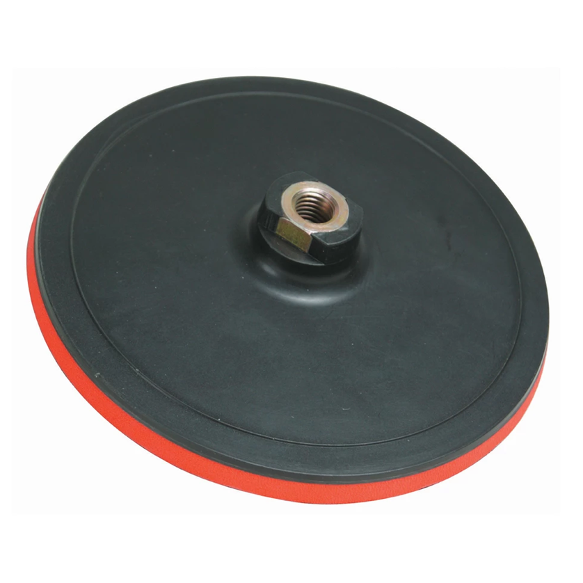 Stevige steunschijf voor het gebruik met klittenband polijstsponzen en klittenband schuurpapier. Compatibel met haakse slijpmachines en schuur-/polijstmachines. M14 x 2 vrouwelijk schroefdraad.