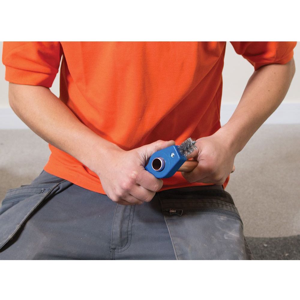 Carbon stalen borstels voor het reinigen en afbramen van koperen buizen met een diameter van 15 en 22 mm.