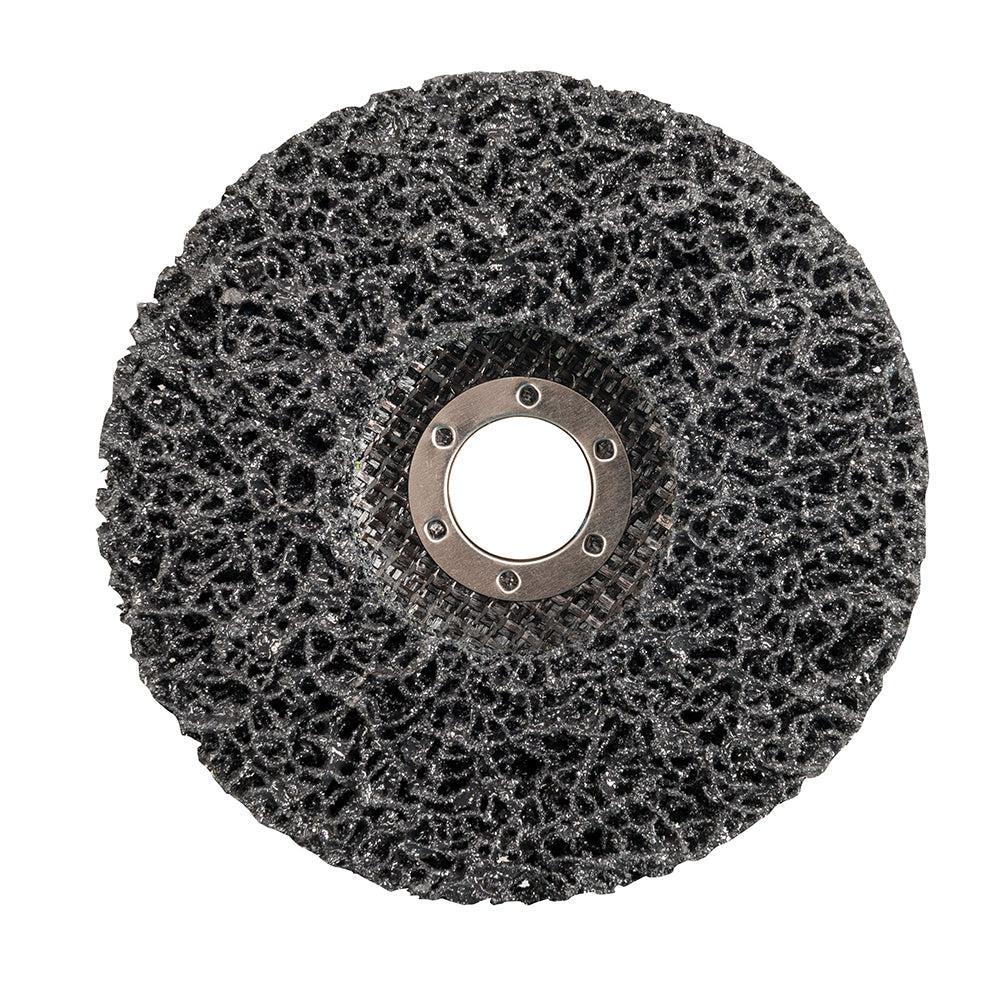 De schuurschijf is vervaardigd met een siliciumcarbide gecoat nylon gaas en een robuuste glasvezel steunschijf, wat zorgt voor een uitstekende duurzaamheid en een lange levensduur. Dankzij de unieke samenstelling kan deze schuurschijf sterke materialen aan en blijft hij koel tijdens gebruik, wat bijdraagt aan een efficiënte werking en blijvende prestaties.