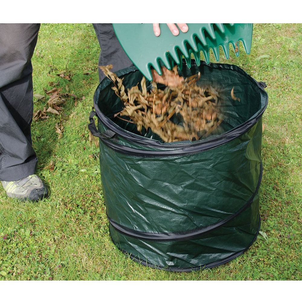 Het ontwerp van de tuinafvalzak is doordacht en gebruiksvriendelijk. Dankzij het veerbelaste lichaam opent de zak zich automatisch, waardoor u deze snel en eenvoudig kunt gebruiken. De stevige handvaten zijn een geweldige toevoeging; met twee handvaten aan de zijkant kunt u de zak efficiënt optillen en een extra handvat aan de bovenkant maakt het kantelen en legen van de zak een fluitje van een cent.
