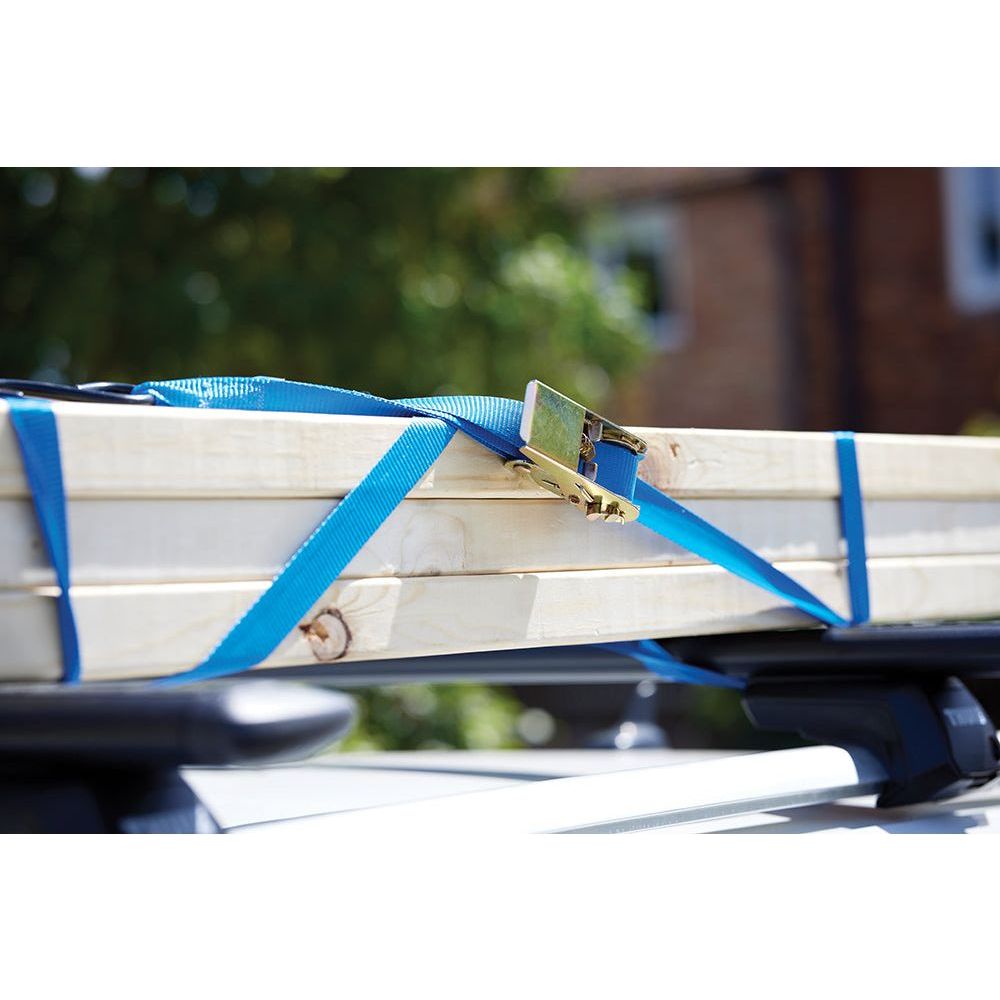 Duurzaam weerbestendig polyester met gestikte versterking. Automatisch vergrendelende ratelactie zekert ladingen snel en gemakkelijk. Snel-verlos spanhendel. S-haken. Snij- en schuurbestendig. Geschikt voor het vastzetten van grote ladingen met onregelmatige vorm voor transport. Komt overeen met BSEN12195.