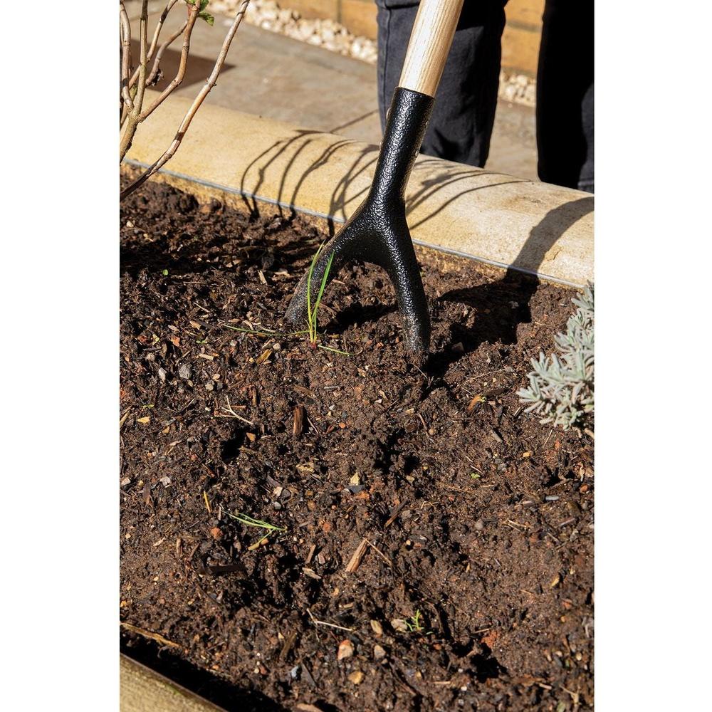 Het ergonomische essenhouten handvat is niet alleen esthetisch aantrekkelijk, maar ook ontworpen voor comfort en grip tijdens het gebruik. Het taps toelopende handvat zorgt voor extra kracht en stabiliteit tijdens het schoffelen en maakt het verwijderen van klein onkruid en het opbreken van de aarde een moeiteloze taak.