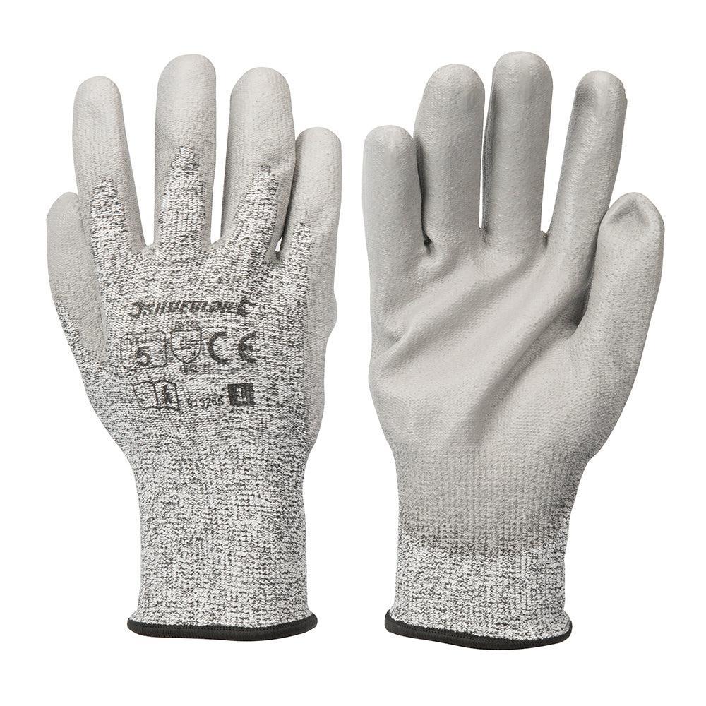 Ontdek de Silverline - Snijbestendige werkhandschoenen D L 9, uw betrouwbare partner in veilige arbeid. Deze hoogwaardige 'Heavy-Duty' handschoenen zijn speciaal ontworpen voor algemene toepassingen en bieden een uitstekende bescherming tegen diverse gevaren op de werkvloer. De handschoenen zijn vervaardigd uit een sterke 13 G HPPE schelp, die zorgt voor een optimale pasvorm en comfort, terwijl de PU-gedompelde palm zorgt voor een uitstekende grip en duurzaamheid.