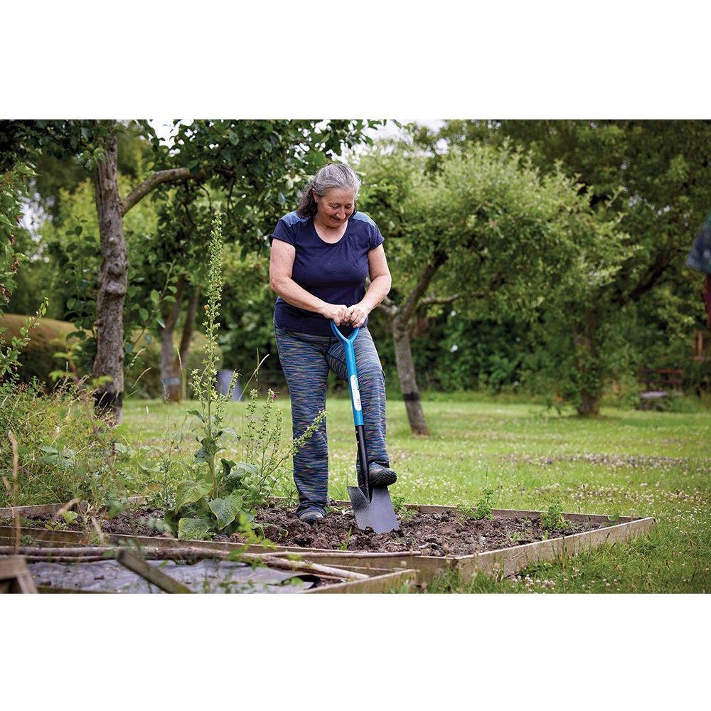 Epoxygecoate kop met hamerafwerking. Gehard en getemperd voor een lange levensduur. Polypropyleen-gecoate schacht en PYD-handvat. Om te graven, grond te bewerken, en om te planten. Kop L x B: 280 x 180 mm.