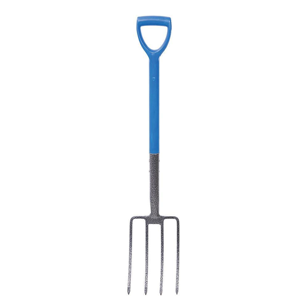 Spitvork epoxygecoate hamerafwerking en flexibele tanden. Polypropyleen schacht en PD-handvat. Gehard voor duurzaamheid. Voor algemeen tuinwerk, graven en aarde omploegen. Individueel getest voor 3 minuten op 40 kg. Kop L x B: 280 x 180 mm.
