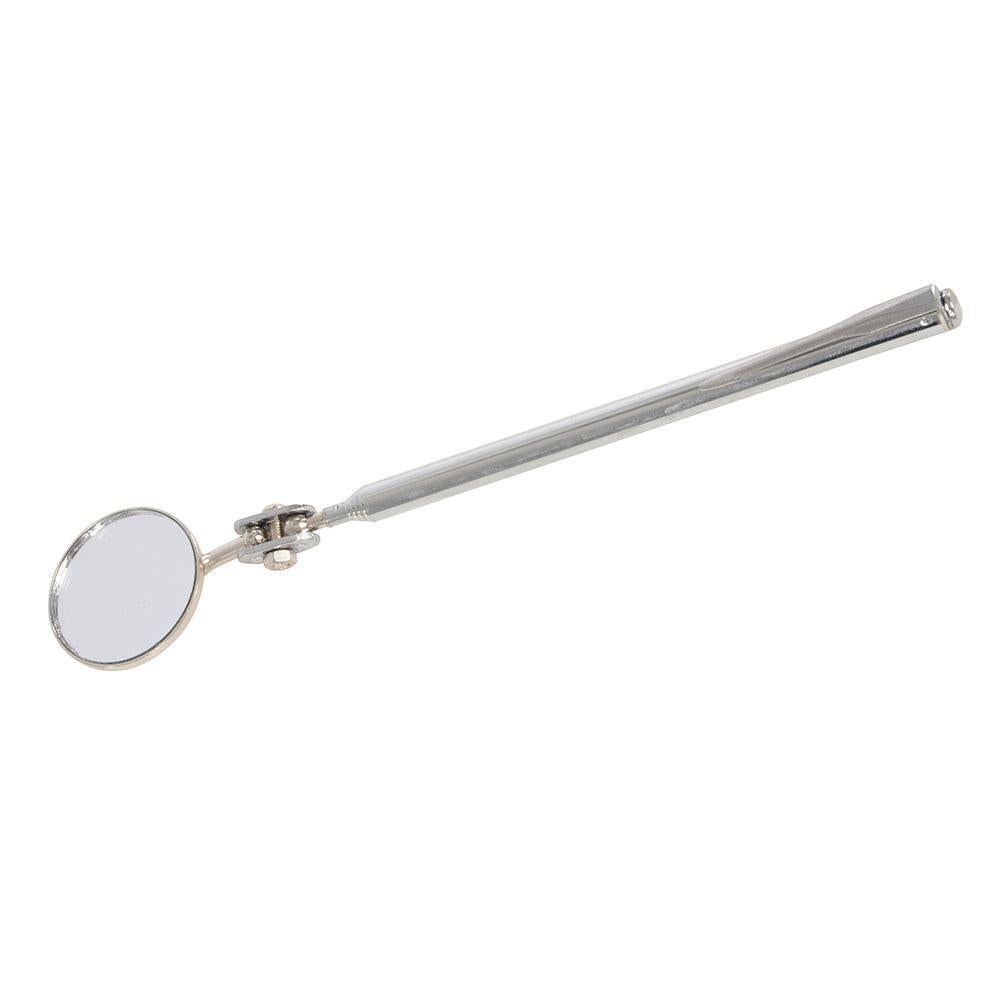 Telescopische spiegel op een roterende kogellager voor een 360° zicht. Chroom geplateerde messing buis. Ideaal voor gebruik in huis en in de werkplaats. Verlengt van 200 tot 500 mm, 30 mm diameter spiegel.