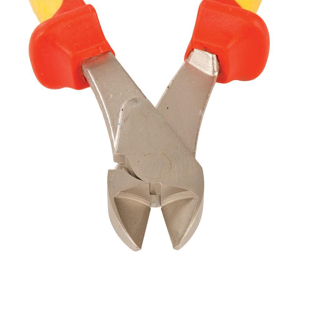 Zijsnijtang uit hoogwaardig chroom vanadium staal met 2-kleurige, antislip handvaten. Individueel getest op 10.000 V. Komt overeen met DIN EN60900 (VDE4000 9659).