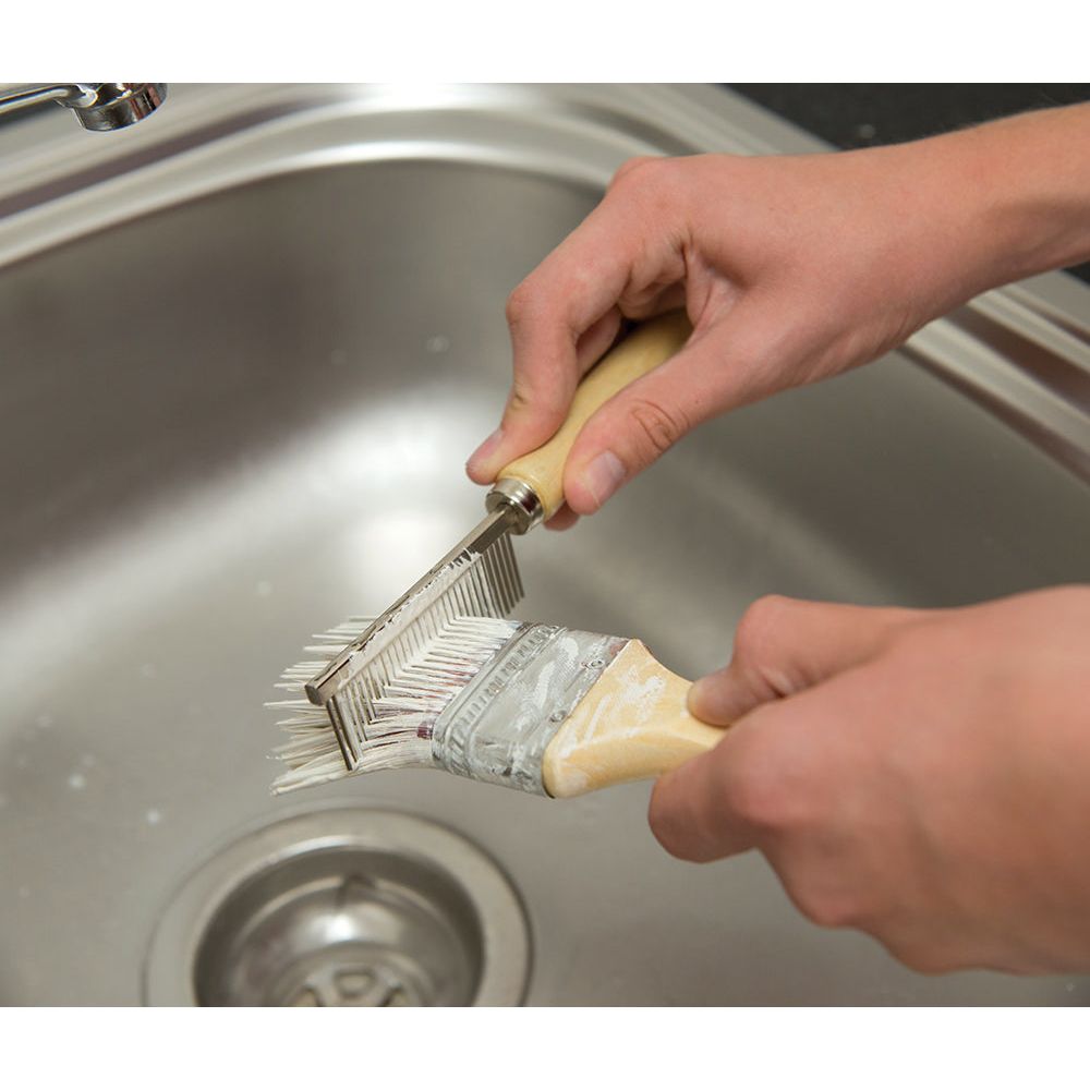 Met het comfortabele houten handvat ligt de kam prima in de hand, waardoor je moeiteloos overtollige verf en hardnekkige droge verfresten kunt verwijderen. De ingenieuze kamvorm helpt je niet alleen bij het reinigen van kwasten, maar zorgt er ook voor dat de kwastharen en filamenten recht getrokken worden. Dit verlengt niet alleen de levensduur van je kwasten, maar optimaliseert ook hun prestaties, zodat je altijd het beste resultaat behaalt.
