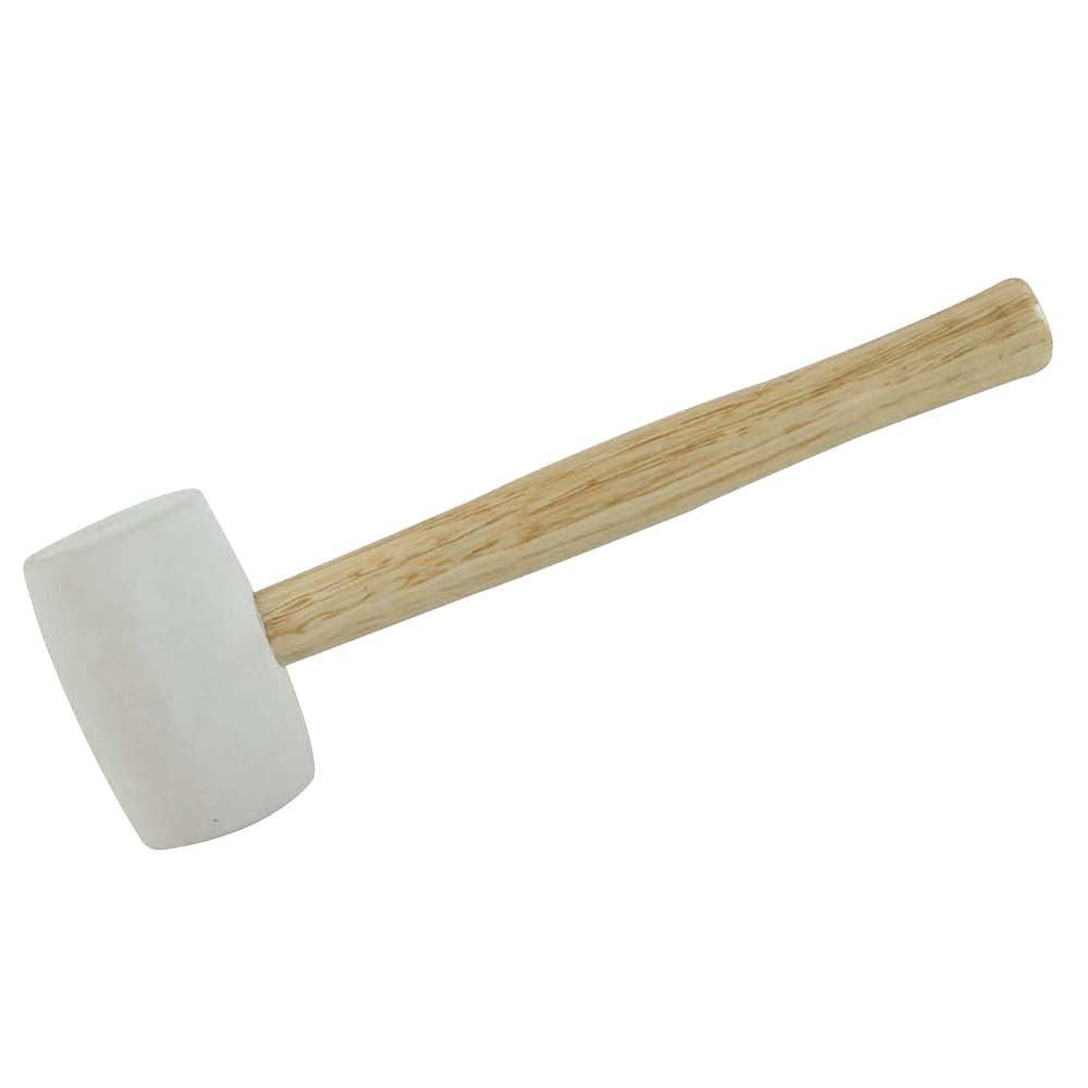 De robuuste kop van de hamer is zorgvuldig vastgezet met een combinatie van lijm en een pen, wat extra stabiliteit en betrouwbaarheid biedt tijdens het gebruik. Dit zorgt ervoor dat de kop stevig op de schacht blijft zitten, zelfs bij intensief gebruik, wat bijdraagt aan de lange levensduur van deze rubberen hamer.