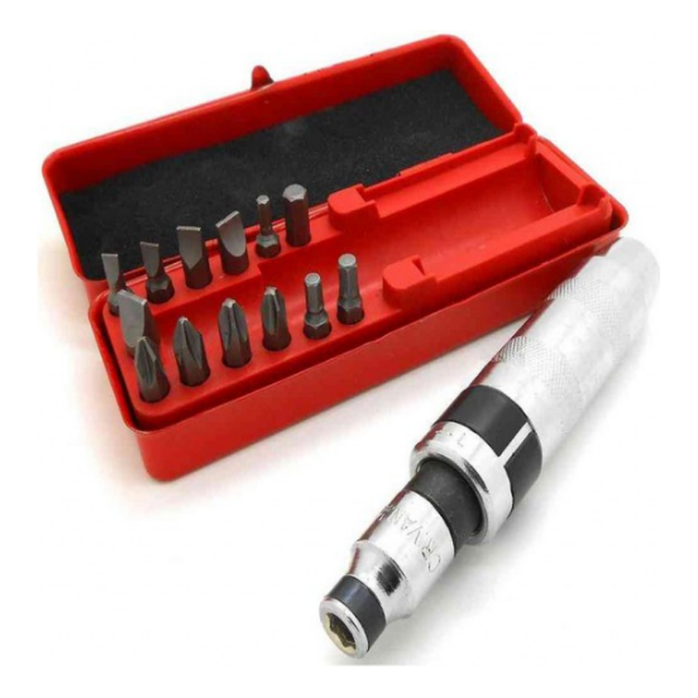 De neerwaartse beweging die hierdoor ontstaat wordt in de slagschroevendraaier omgezet in een sterke zijdelingse kracht. Met deze kracht wordt de schroef verplaatst. De schroef schrikt als het ware los. Door de neerwaartse kracht is er minder kans op het “doldraaien” van de schroef of bout.