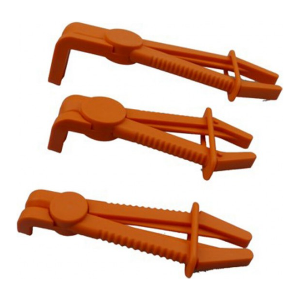 De tangen in deze set zijn verstelbaar door middel van een houderring, wat zorgt voor een hoge mate van veelzijdigheid. Dit maakt het mogelijk om de tang eenvoudig aan te passen aan de specifieke diameter van de slang die je wilt afklemmen, variërend van 15 mm tot 60 mm. Hiermee kun je efficiënt en veilig werken aan een verscheidenheid aan slangtypes.