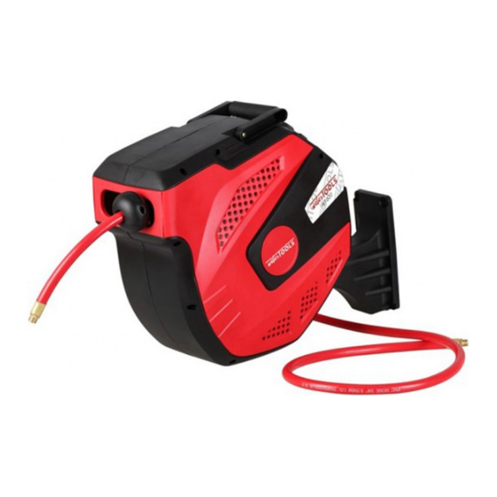 Kenmerken: Unieke slanggeleiding, rolt altijd soepel en geordend op Snelheidsbegrenzing, geen ongevallen door snel terugslaande slang Soepele en sterke PVC luchtslang Behuizing in stevig polypropyleen 180° draaibaar op muurbevestiging Klikmechanisme waardoor de slang op ieder punt gestopt kan worden Automatische terugkeer door kort aantrekken Behuizing met handvat voor eventuele verplaatsing Lange aansluitslang van 1,5 meter Licht van gewicht Werktemperatuur: -10°C tot 60°C Technische gegevens: Lengte kabel 20 + 1,5 meter Muurbevestiging Diameter inwendig 9,5 mm Diameter uitwendig 12 mm Aansluiting 1/4" Maximum druk 12 bar Kwaliteit kabel PVC