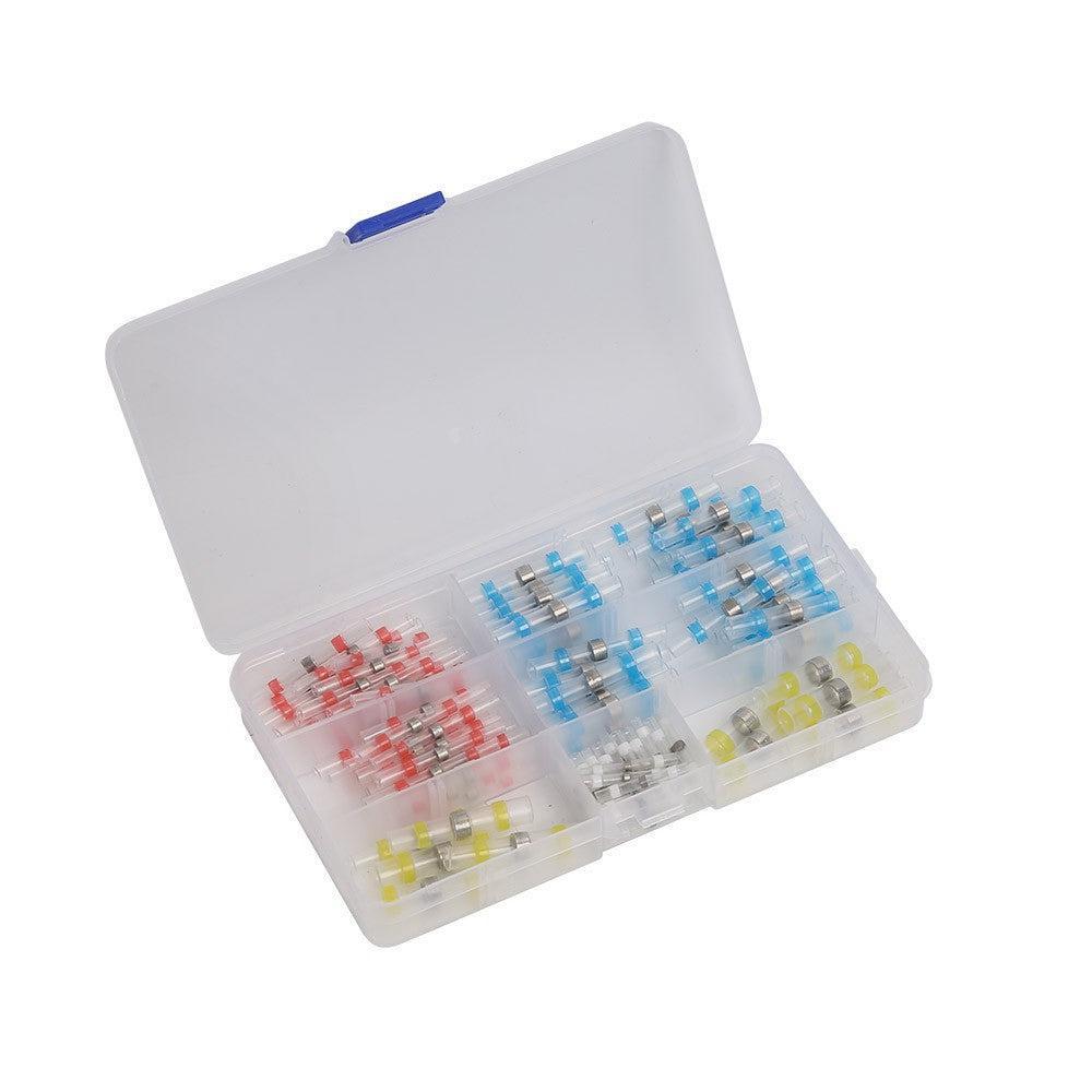 Deze uitgebreide set bevat in totaal 120 soldeerhulzen, zorgvuldig geselecteerd om aan al je behoeften te voldoen. Je ontvangt 40 blauwe soldeerhulzen, perfect voor standaard toepassingen; 40 rode soldeerhulzen, ideaal voor verbindingen die extra bescherming vereisen; 10 gele soldeerhulzen, die een opvallende en duidelijke kleur bieden voor specifieke identificatie; en 30 witte soldeerhulzen, die veelzijdig inzetbaar zijn voor diverse soldeerwerkzaamheden.