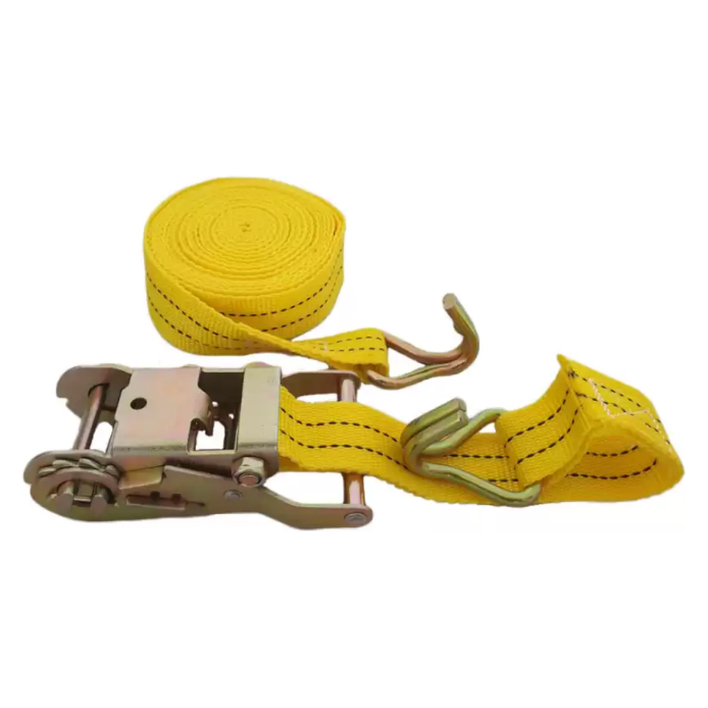 De spanband is uitgerust met een gebruiksvriendelijk ratelmechanisme, waardoor u eenvoudig de spanning kunt aanpassen en de lading veilig kunt fixeren. Dit mechanisme maakt het ook gemakkelijk om de band los te maken wanneer dat nodig is, zonder gedoe. Of u nu een professional bent in de transportsector of een doe-het-zelver die zijn spullen veilig wil vervoeren, deze spanband is een onmisbaar hulpmiddel.