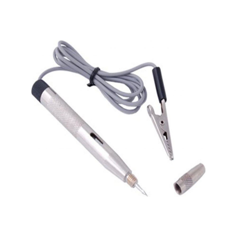 Spanningszoeker 6 Volt tot 24 Volt, met CE goedkeuring, in stevige messing behuizing. Spanningszoeker voorzien van een testlampje en een naaldpunt voor geïsoleerde kabels.