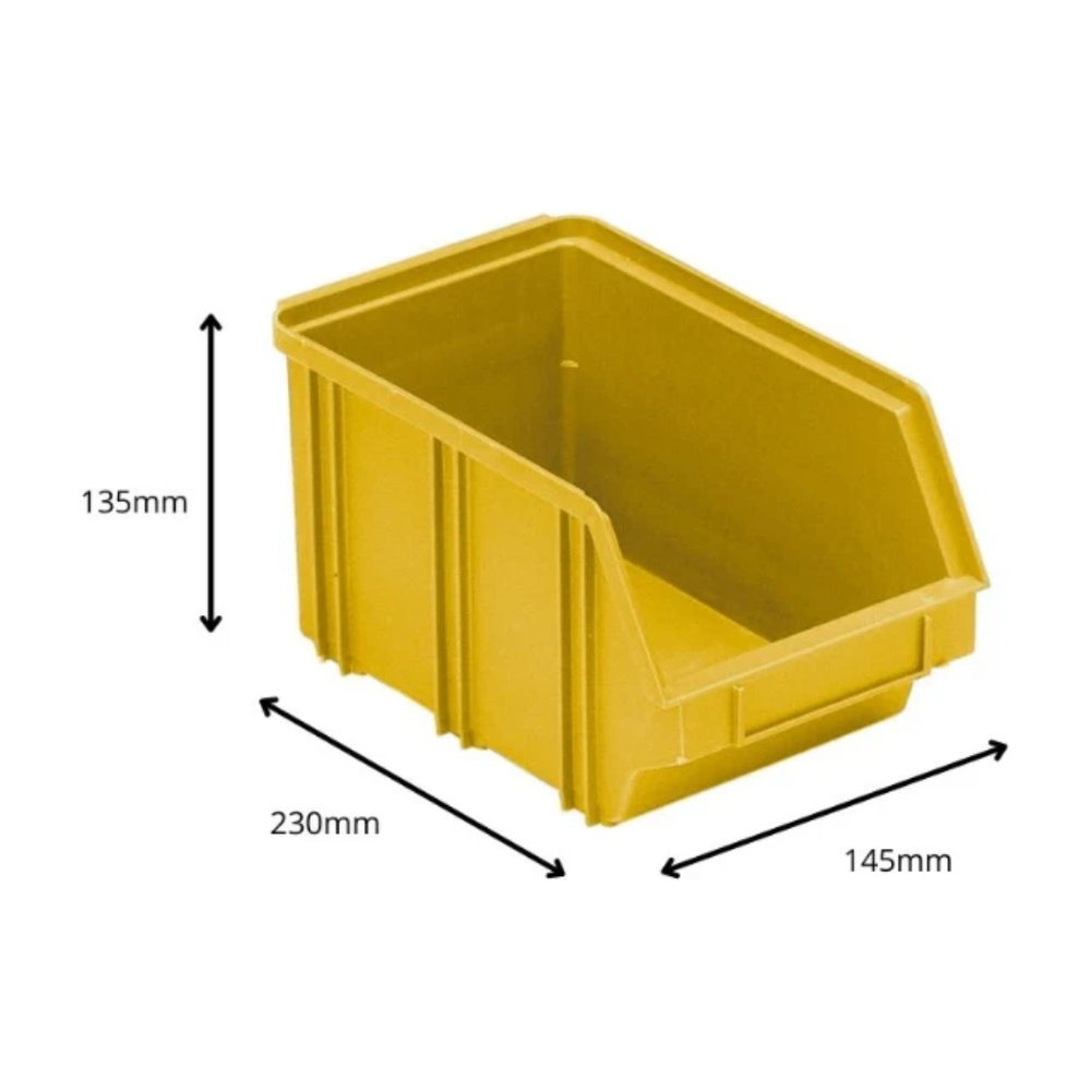 De Stapelbakken B3 hebben een breedte van 145 mm, een diepte van 230 mm en een hoogte van 135 mm, waardoor ze ideaal zijn voor het organiseren en stapelen van verschillende materialen en producten. Of u nu een professional bent die een efficiënte opslagoplossing zoekt voor uw magazijn of een particulier die zijn garage of workshop wil opgeruimd houden, deze stapelbakken zijn de ideale keuze.
