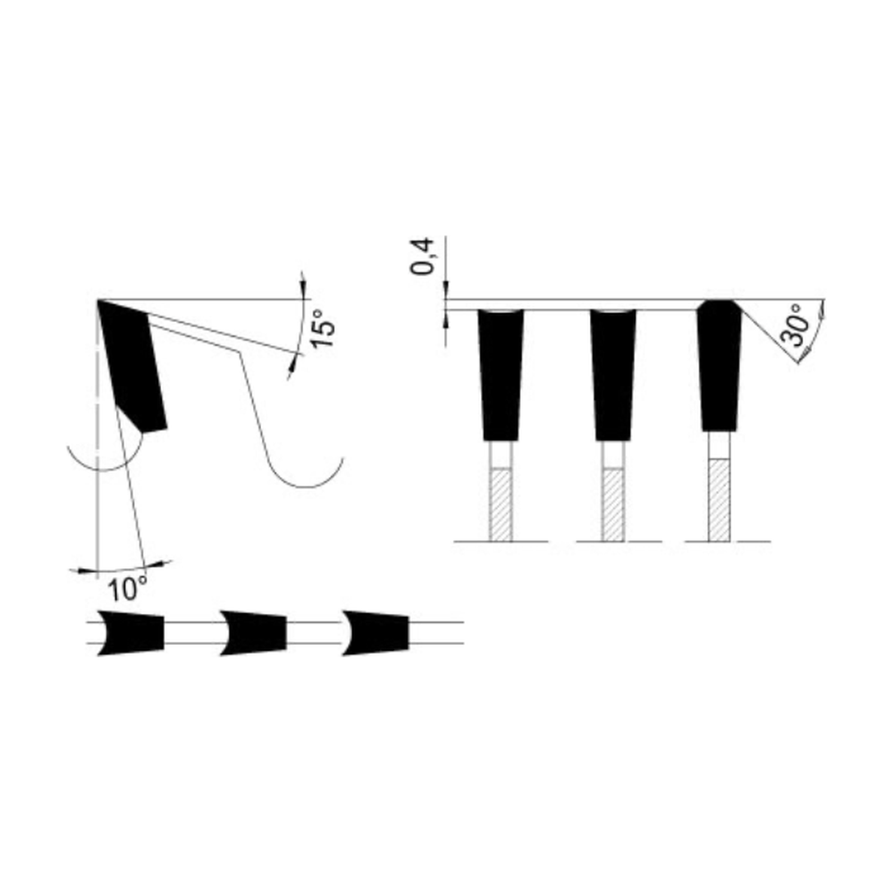 - Tandvorm (HTF) = Holtand-trapezium-vlak-vlak met positieve spaanhoek