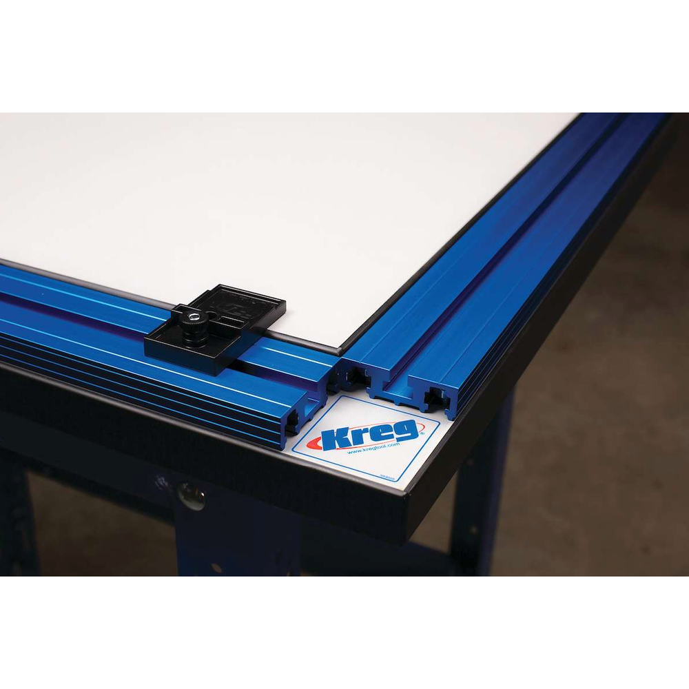 The Clamp Trak™ lets you turn an entire workbench or sawhorse into a clamping station. The Clamp Trak™ can be quickly routed into any wood or composite work surface, such as a workbench or sawhorse, or staggered between two 3/4"-thick panels to provide a flush-mounted clamping plane anywhere you need it. Once installed, it accepts any Kreg Bench Clamp to give you complete control over where you position your clamp. When not in use, you can remove the Bench Clamp™ to regain your flush work surface.