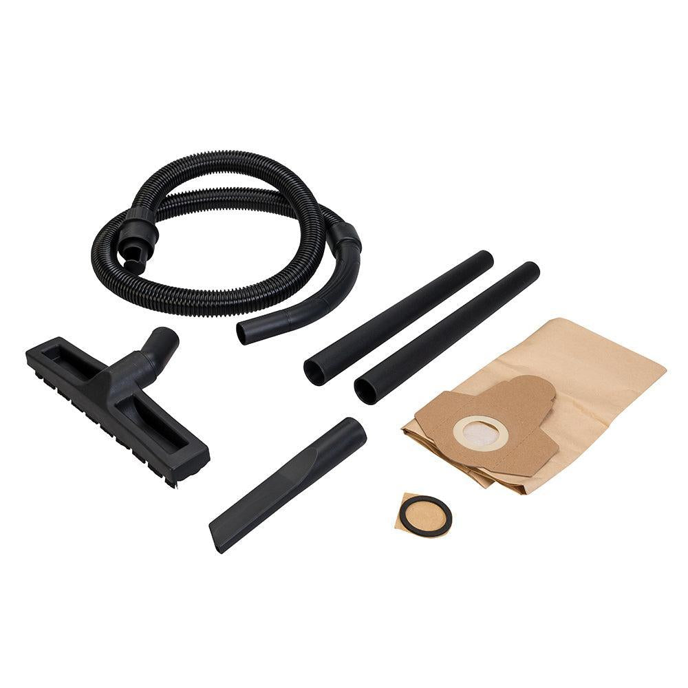 De Task stofzuiger wordt geleverd met een compleet assortiment accessoires, waaronder een 1,5 meter lange slang, vier zwenkwielen voor extra stabiliteit, een levenslang filter dat zorgt voor een efficiënte luchtstroom en een stofzak voor eenvoudige afvoer van opgezogen materialen. Ook inbegrepen zijn twee verlengbuizen voor extra bereik, een opzetborstel voor verschillende oppervlakken en een zuighulpstuk voor moeilijk bereikbare holten.
