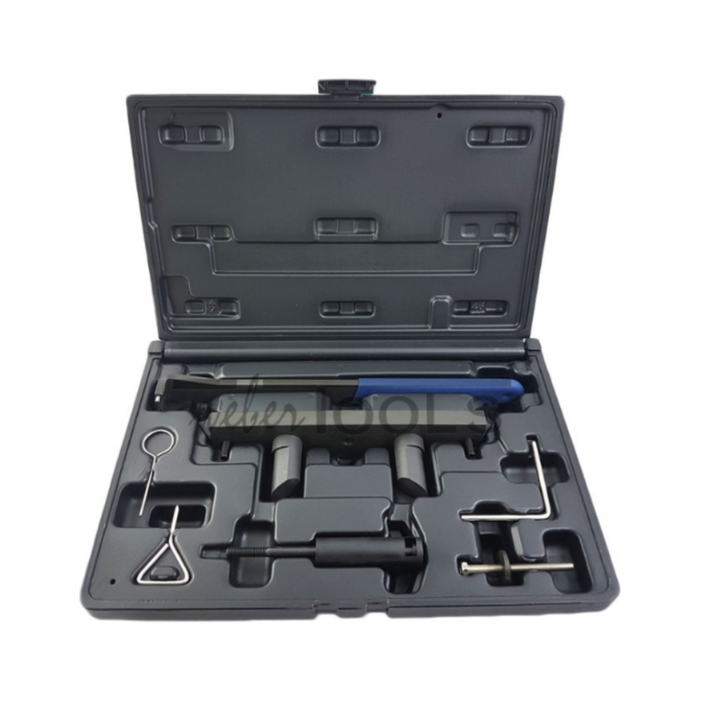 Ontdek de perfectie van de Timing set VAG FSI 2.0 & FSI 2.0 Turbo, speciaal ontworpen voor de veeleisende autotechnicus en automotive liefhebber. Dit hoogwaardige gereedschap is essentieel voor het blokkeren van de nokkenas en krukas, zodat u met vertrouwen de motor van uw voertuig kunt onderhouden en repareren.