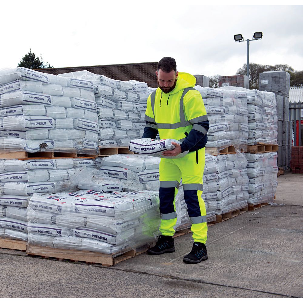 Met de Tough Grit Tweekleurige Hi-Vis Joggingbroek ben je verzekerd van kleding die niet alleen voldoet aan de normen van BS EN ISO 20471:2013 klasse 1, maar die ook een statement maakt. Of je nu aan het werk bent, gaat joggen of gewoon gaat relaxen, deze joggingbroek zorgt ervoor dat je er goed uitziet en je veilig voelt.