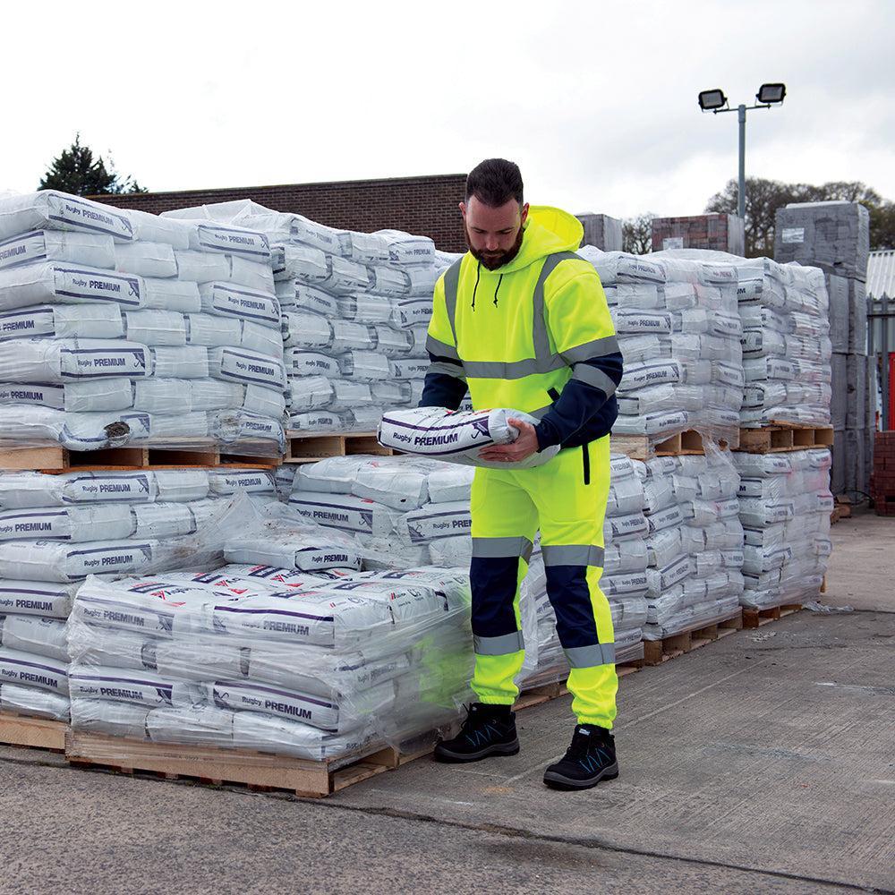 Ontdek de Tough Grit - Tweekleurige Hi-Vis Joggingbroek in een schitterende geel/blauwe kleurencombinatie. Deze joggingbroek is ontworpen voor zowel comfort als zichtbaarheid, ideaal voor professionals die veiligheid prioriteit geven. Het opvallende hi-vis ontwerp zorgt ervoor dat je goed zichtbaar bent in verschillende werkomgevingen, terwijl het elastische tailleband voor een perfecte pasvorm zorgt.