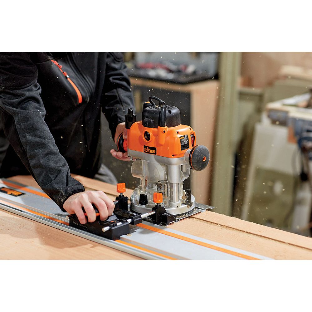 De sterke, chroom geplateerde basisplaat en geleiderails voorzien een stevige structuur wanneer gecombineerd met het stootbestendig plastic. Snel-bevestigingsmechanisme zorgt voor een snelle en gemakkelijke bevestiging van de bovenfrees. Compatibel met de volledige Triton bovenfrees lijn.