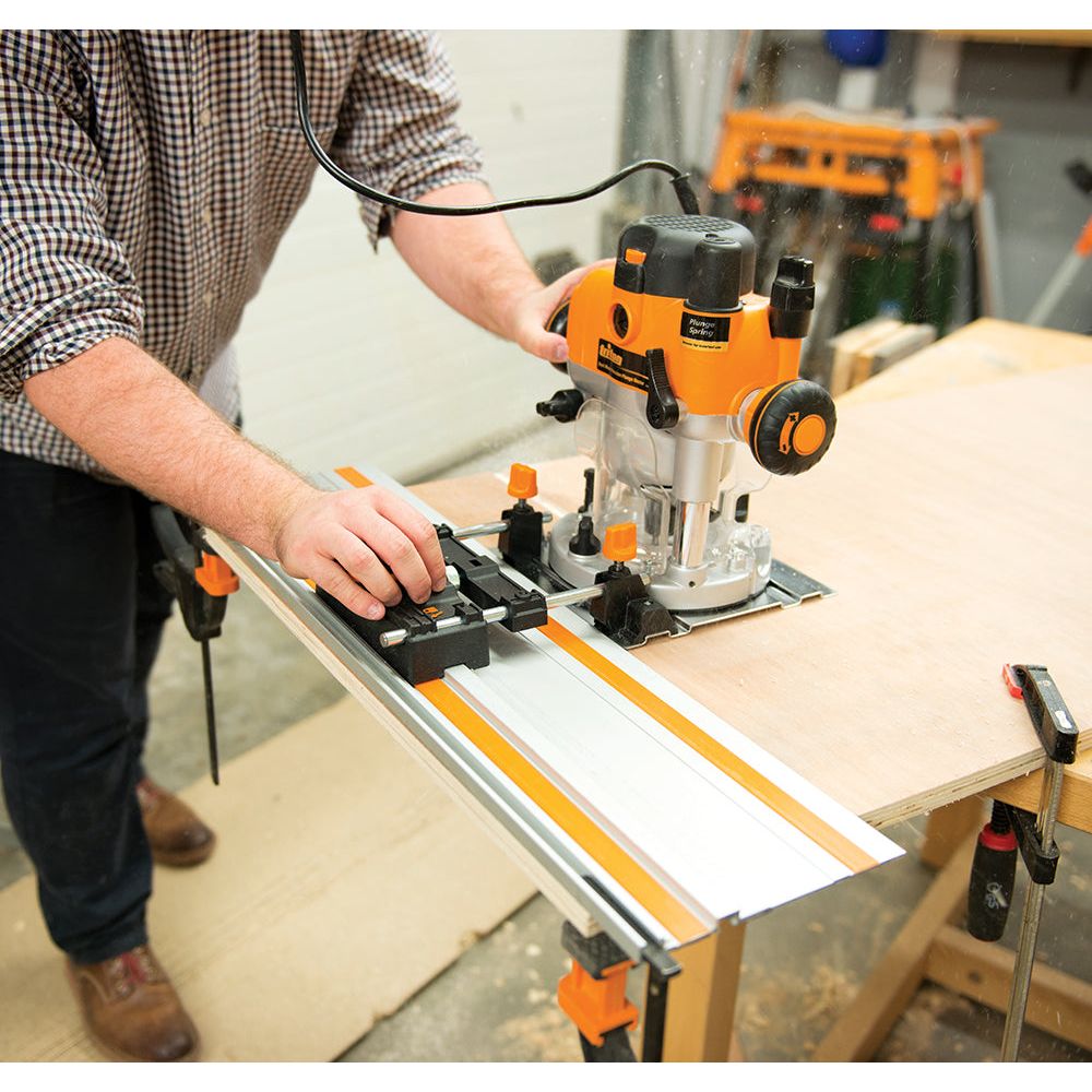 - Bevestigd uw bovenfrees gemakkelijk op een geleiderails Voor extra stabiliteit en nauwkeurigheid tijdens het frezen