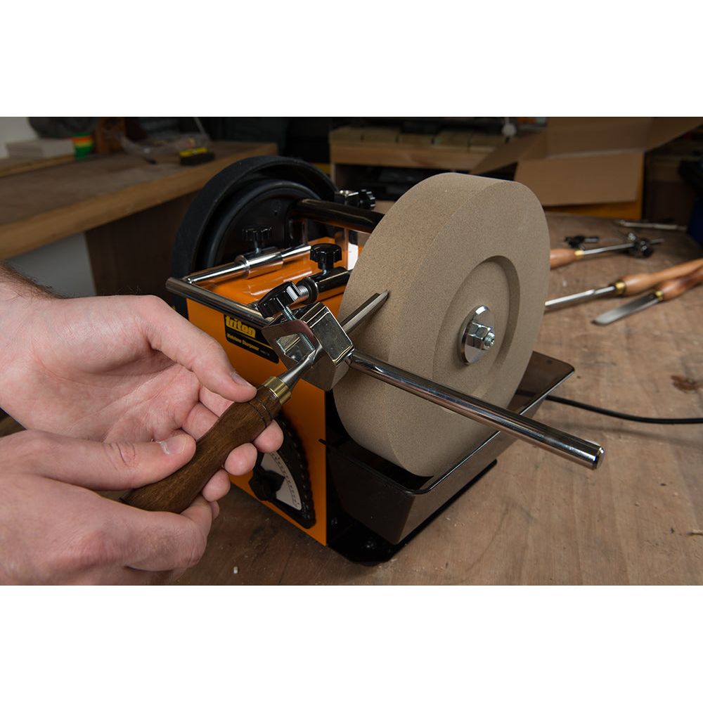 Te gebruiken met de Triton tafelslijpmachine TWSS10. Voor het nauwkeurig slijpen van beeldhouwhulpmiddelen en andere korte gereedschappen. Klemt smalle en stompe beitels stevig vast. De interne V-vorm centraliseert het gereedschap automatisch. Klemt tevens bladen van elektrische machines.